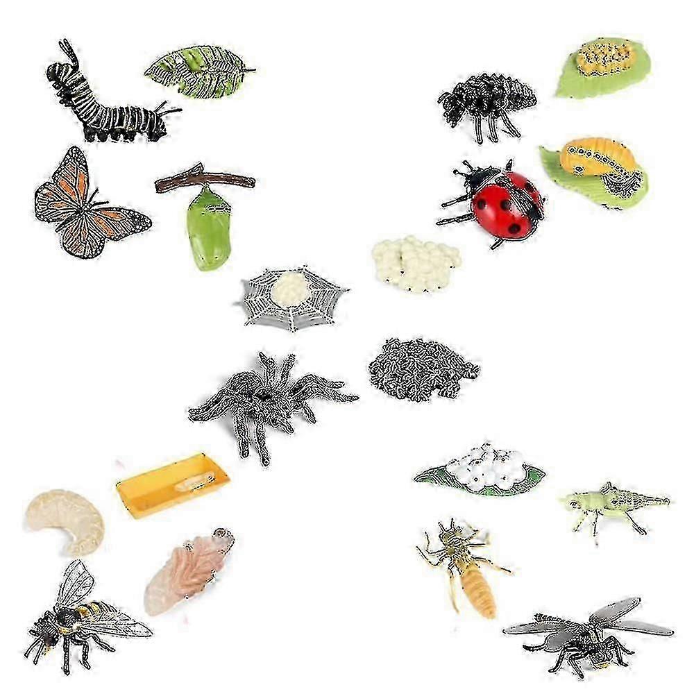 Life Cycle Figurines Of Butterfly Spider Bee Ladybug Dragonfly, Plastic Insect Bug Figures Toy, Sch
