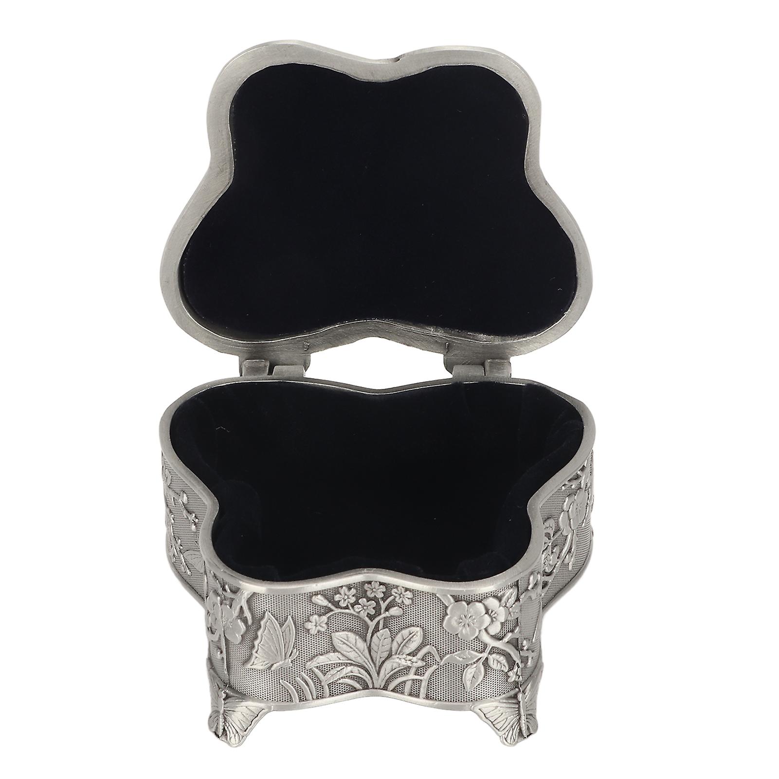 Butterfly Shaped Jewelry Box Zinc Alloy Flower Engraved Pattern Earrings Necklace Storage Box Organizer