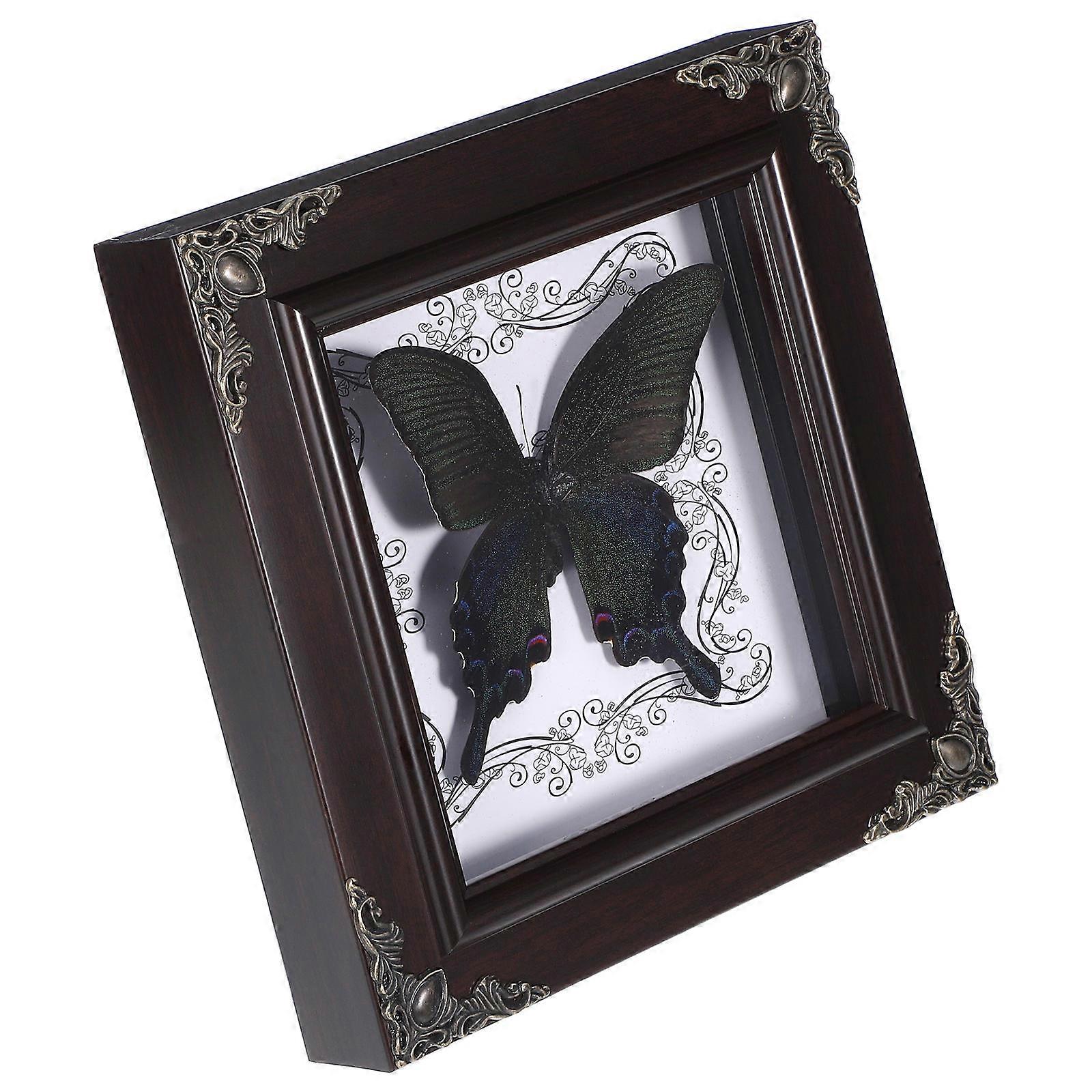 Butterfly Specimen Frame Vintage Style Home Decoration Black Plastic 1Pcs