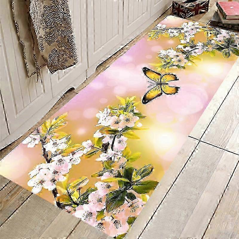 Butterfly Flowers Kitchen Floor Mat Home Entrance Doormat Decoration Corridor Balcony Long Rugs Laundry Room Non-slip Mat