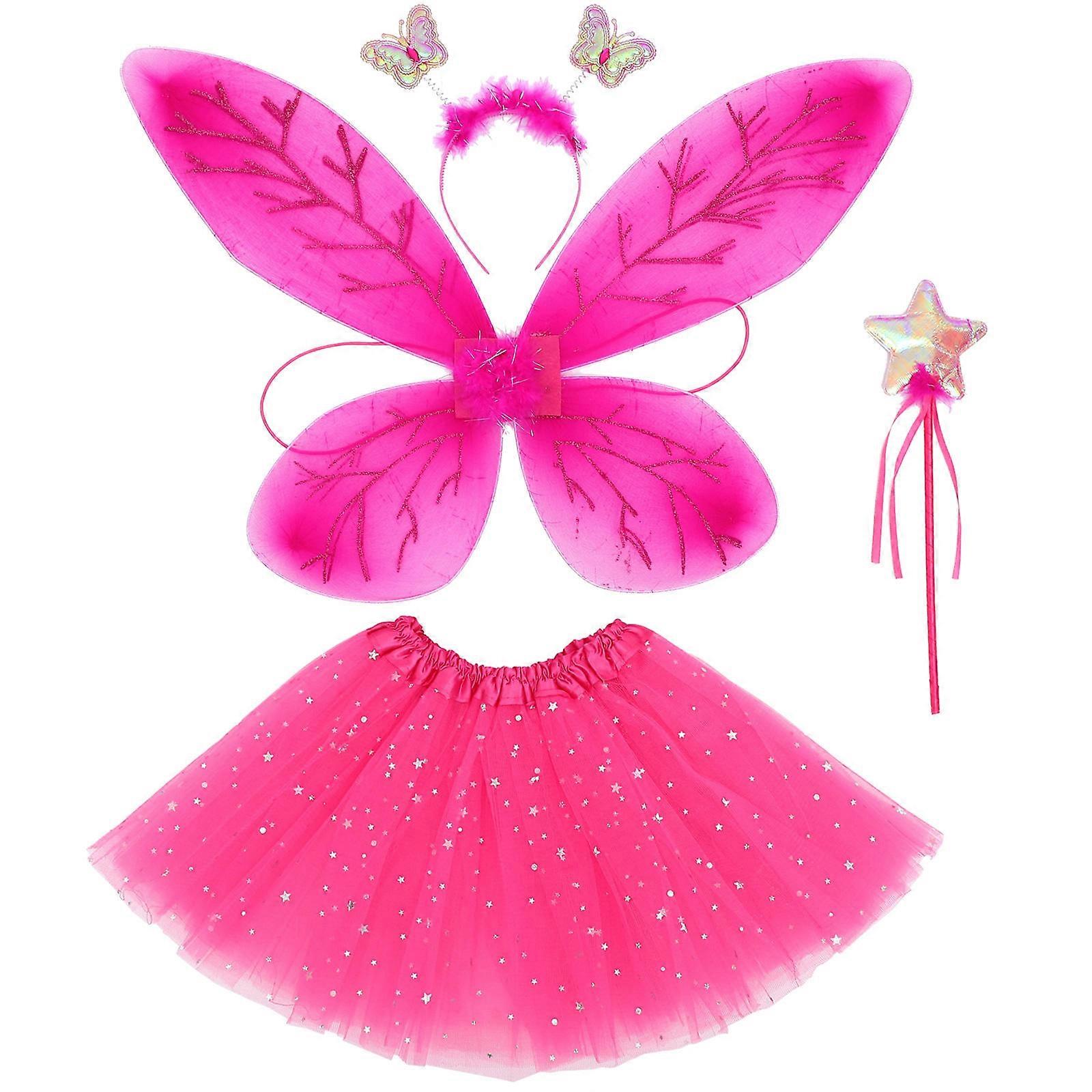 Butterflies Costume Set Rosy Color Comfortable Dressing Up For Girls 1Set