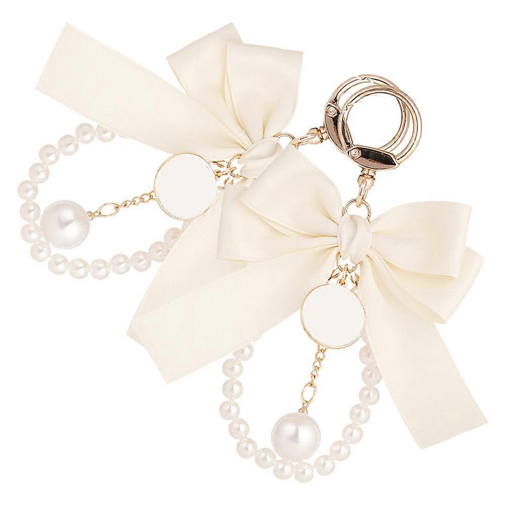 Bowknot Keychain 2Pcs Faux Pearl Bag Pendant For Women Romantic Daily Use 14X12CM