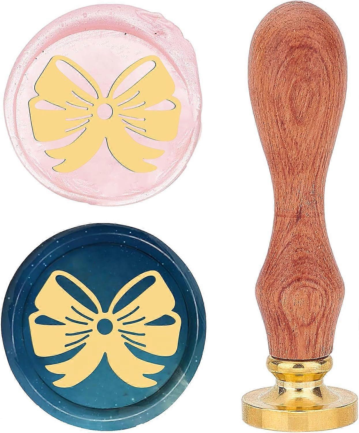 Bowknot Wax Seal Stamp 25mm Sealing Wax Stamps Retro Rosewood Handle Removable Brass Head for Wedding Invitations Envelopes Halloween Christmas Thanks