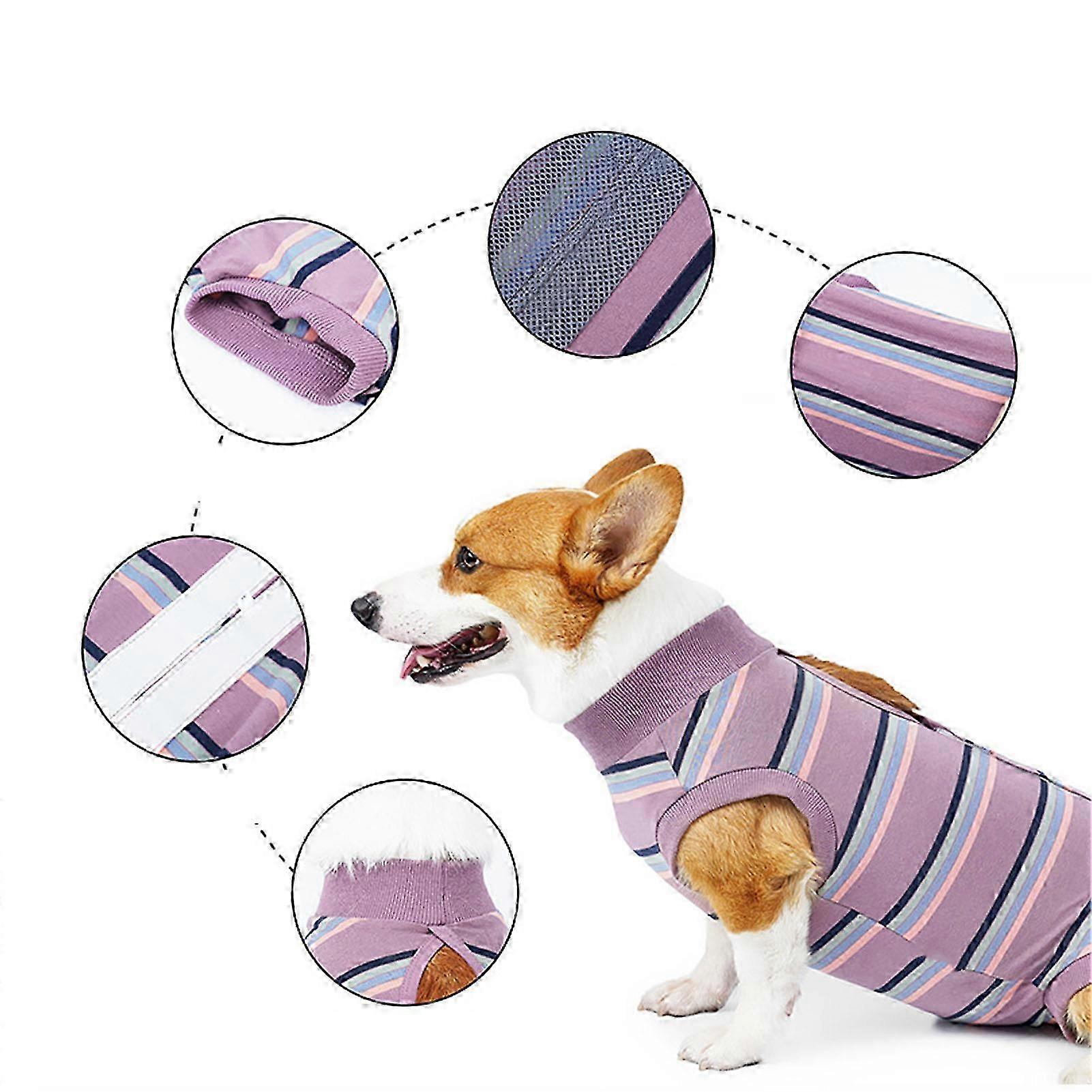 Breathable Dog Recovery Suit for Postoperative Care - Surgical Clothes for Puppies in Wine Red Wide Stripe, Size XL