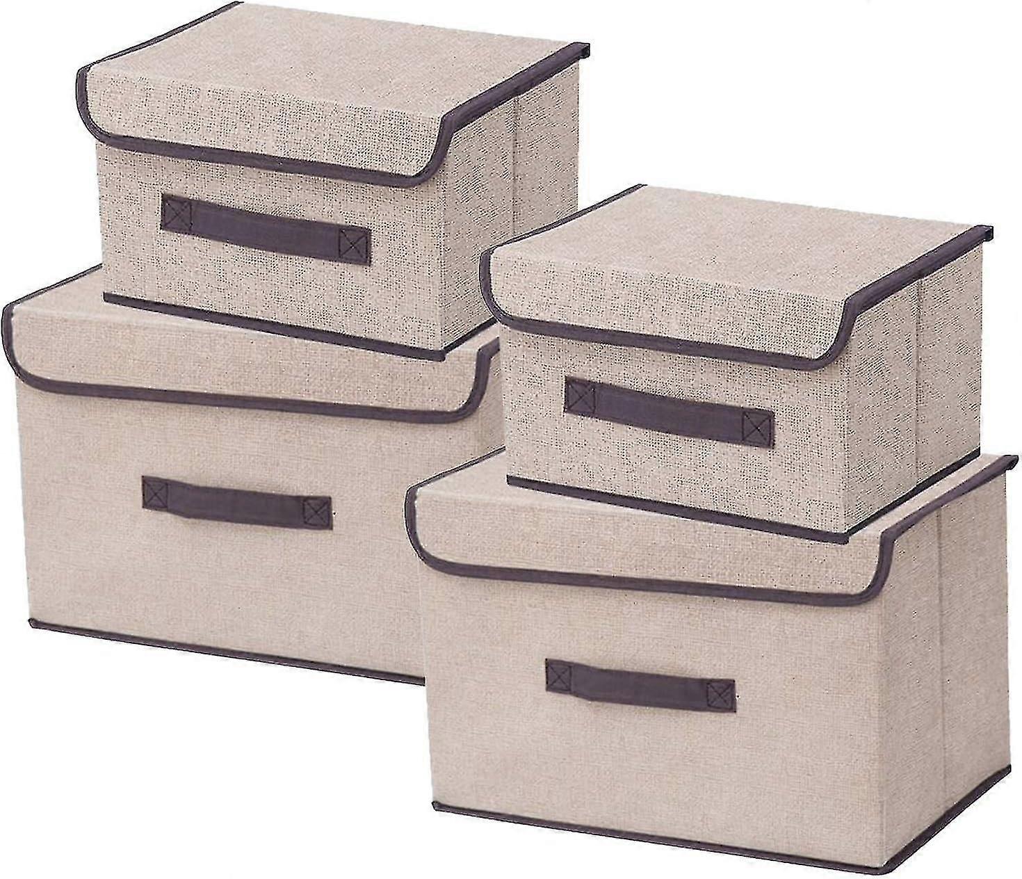 Collapsible Fabric Storage Boxes With Lids Set Of 4 Different Size Boxes For Clothing, Decoration, Underwear, Toys, Magazine
