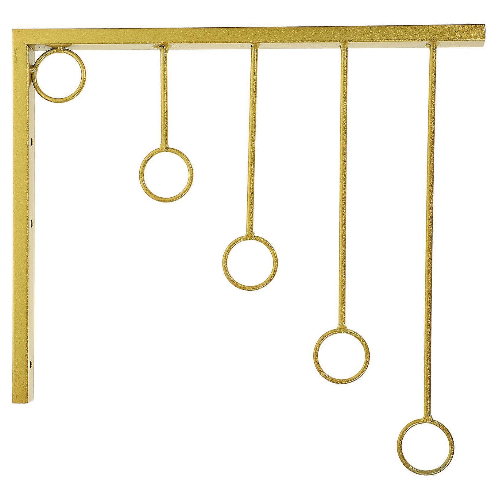 The item is a wall ring hook, which is made of and well processed to achieve modern and well constructed visual effect. It can save of space for you and be used to hold clothes. The edges are finely polished, smooth and without burrs, and will not damage clothes. Features - Color: Golden - Material:Iron - Size: About 30.00X24.00X2.50cm/11.79X9.43X0.98in - Owning the and break resistance ability, very practical, with excellent texture. - Multi-functional design for different occasions and purposes. Easy to install, no professional tools required, easy DIY, saving time and your effort. - Multi-ring design, it can meet your multiple pieces of clothes drying or storage needs. - appearance, fashionable and beautiful, enhancing the overall space aesthetics. - Space-saving, effectively utilizing the internal space of the wardrobe, making the space more tidy and orderly. Package list: 1 x wall hanger display rack