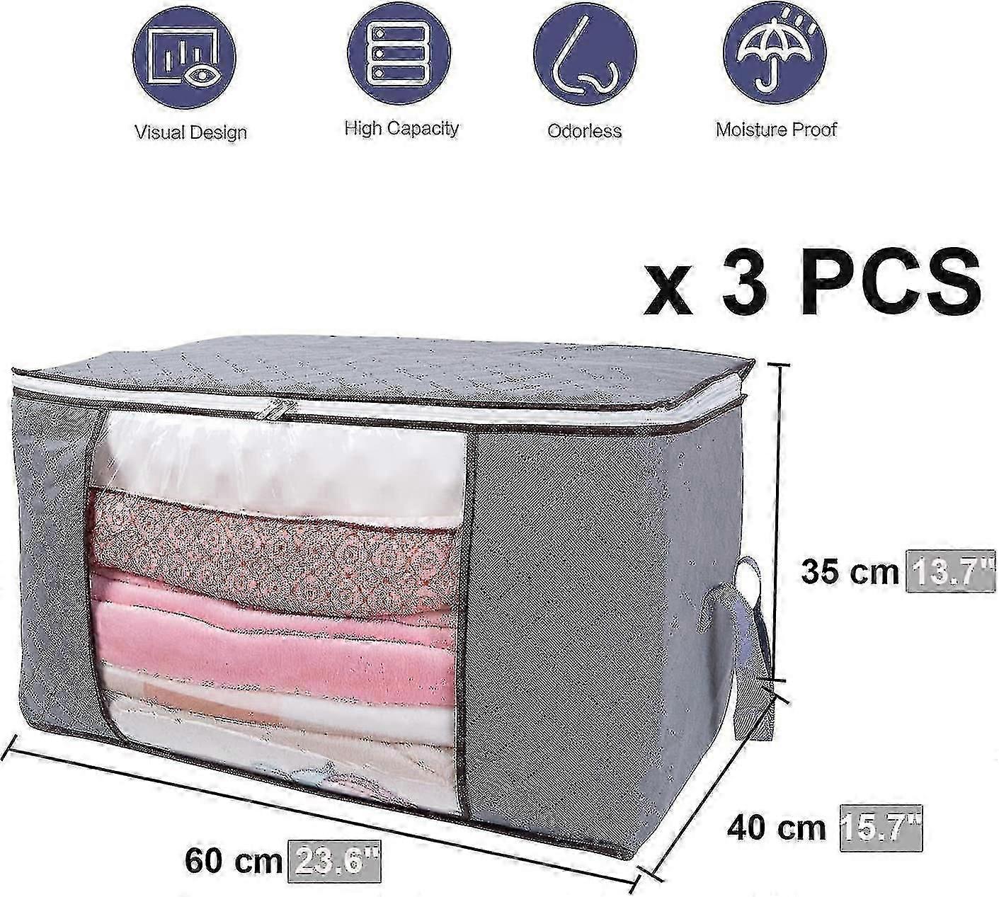 [Large capacity] Each storage bag measures 60 x 40 x 35 cm (3 pieces per set) and has a capacity of 84 L. Spacious space for quilts, sweaters, blankets, pillows, down jackets, plush toys, jackets or other items of clothing [quality material] is made of high quality, odorless three-layer composite non-woven fabric. It promotes ventilation and protects stored items from moisture, dust, pests and water. Keep clothes and bedding clean and fresh [Reinforced handle and double zip] The handle consists of two layers of thick fabric and is therefore twice as resilient. Its very convenient when you carry them from one place to another. Dual-use zippers make it easy to move along the seal. It is equipped with a stainless steel zipper No. 5, which is not easy to break and can be used for a long time [Large transparent window]: Via the monitoring window, you can immediately access saved objects without opening the cover. The collapsible storage bag can be easily collected when not in use. [Multi-function storage option] Ideal for storing garment bags, quilts, sweaters, blankets, pillows, clothes, etc. Suitable for dorms, lofts, basements and bedrooms. Can be used for other purposes Product s