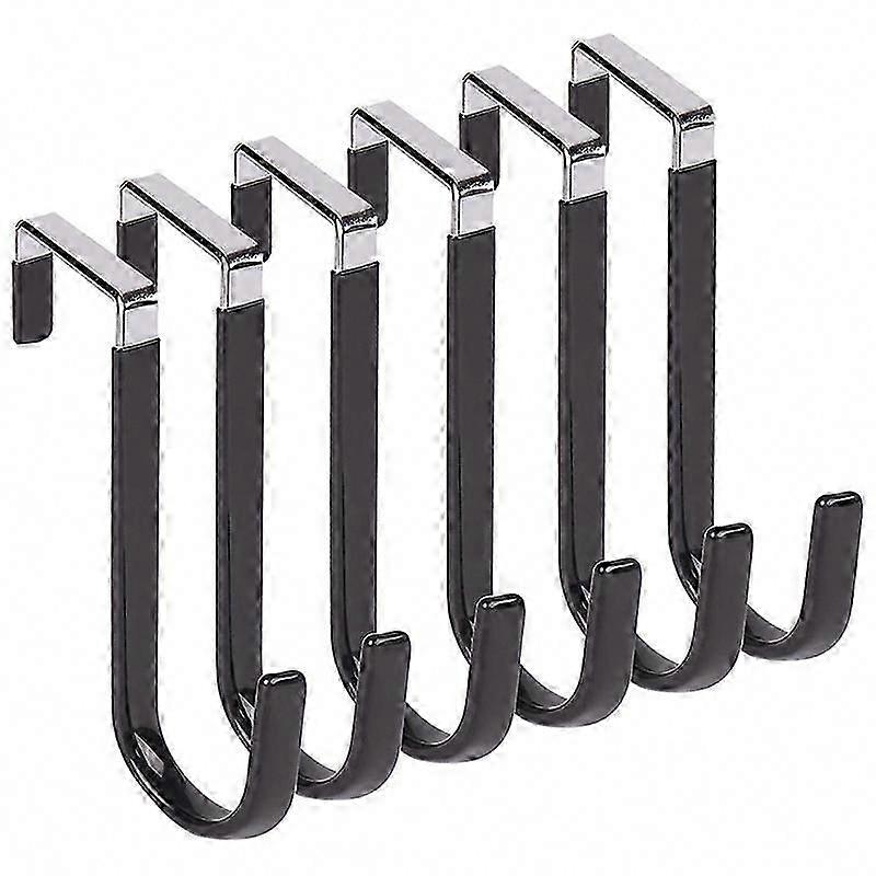 Over Door Hooks for Hanging Clothes, 6 Pack Soft Rubber Hangers Prevent Scratches, Black Bathroom Door Hooks