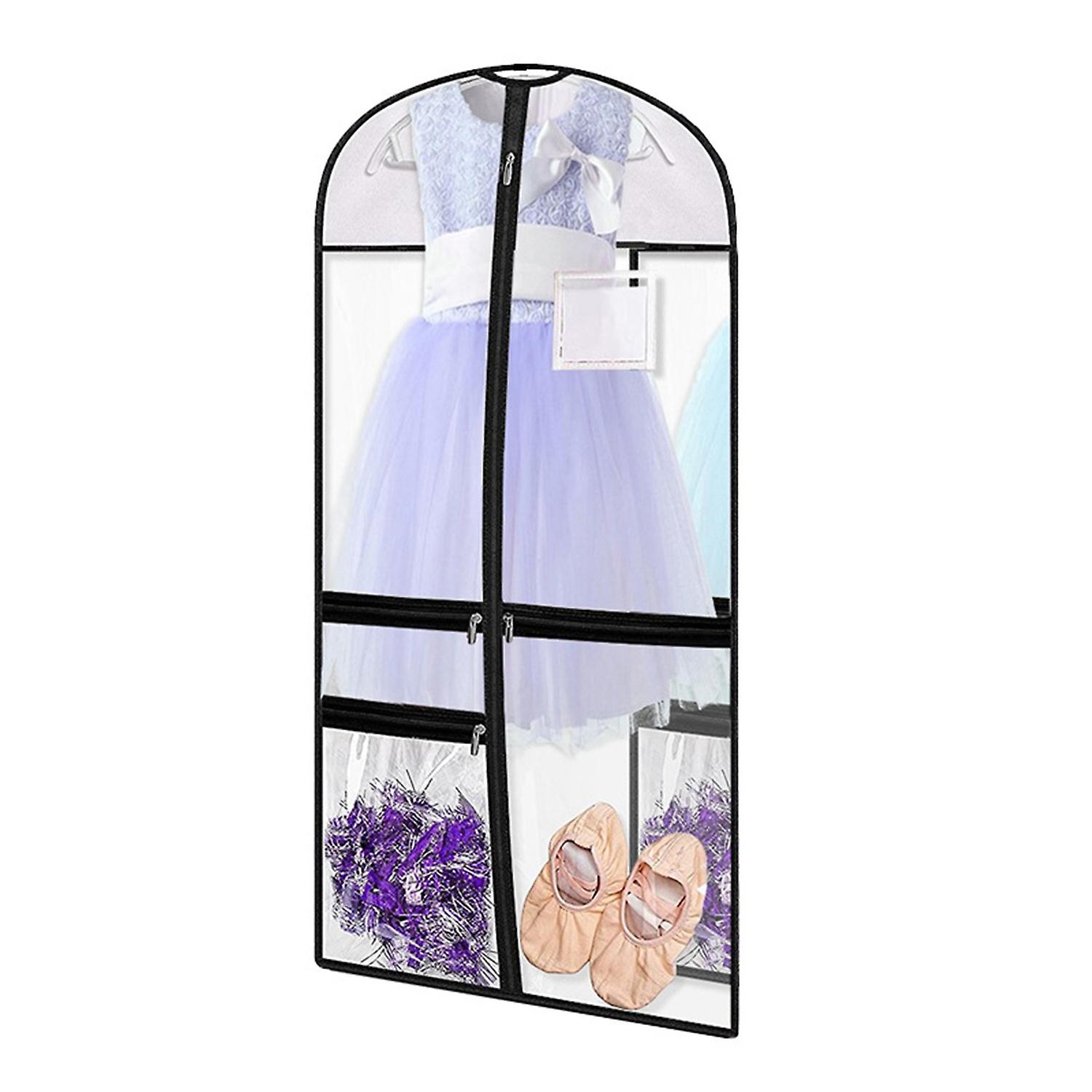 Clothes Dust Cover 4 Zippered Pockets Transparent Moistureproof Foldable Dance Costume Garment Bag W