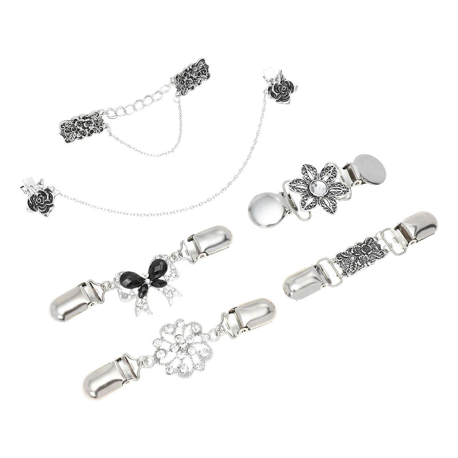 Clip Fasteners for Clothing Vintage Sweater Shawl Clips for Daily Use Silver Alloy Acrylic with Rhinestone Fixing 6Pcs