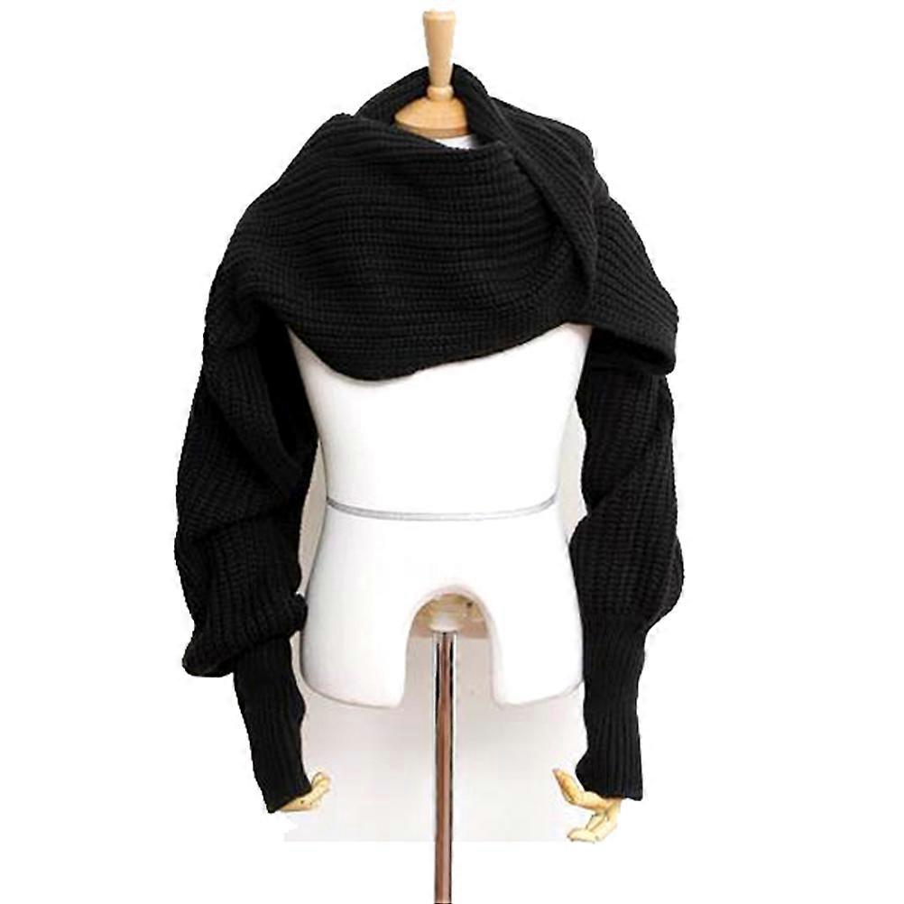 Knit Scarf With Sleeves Cape Shawl Black Warmth Neck And Arms Coverage Unisex Design Autumn Winter 270cm X 50cm 1Set