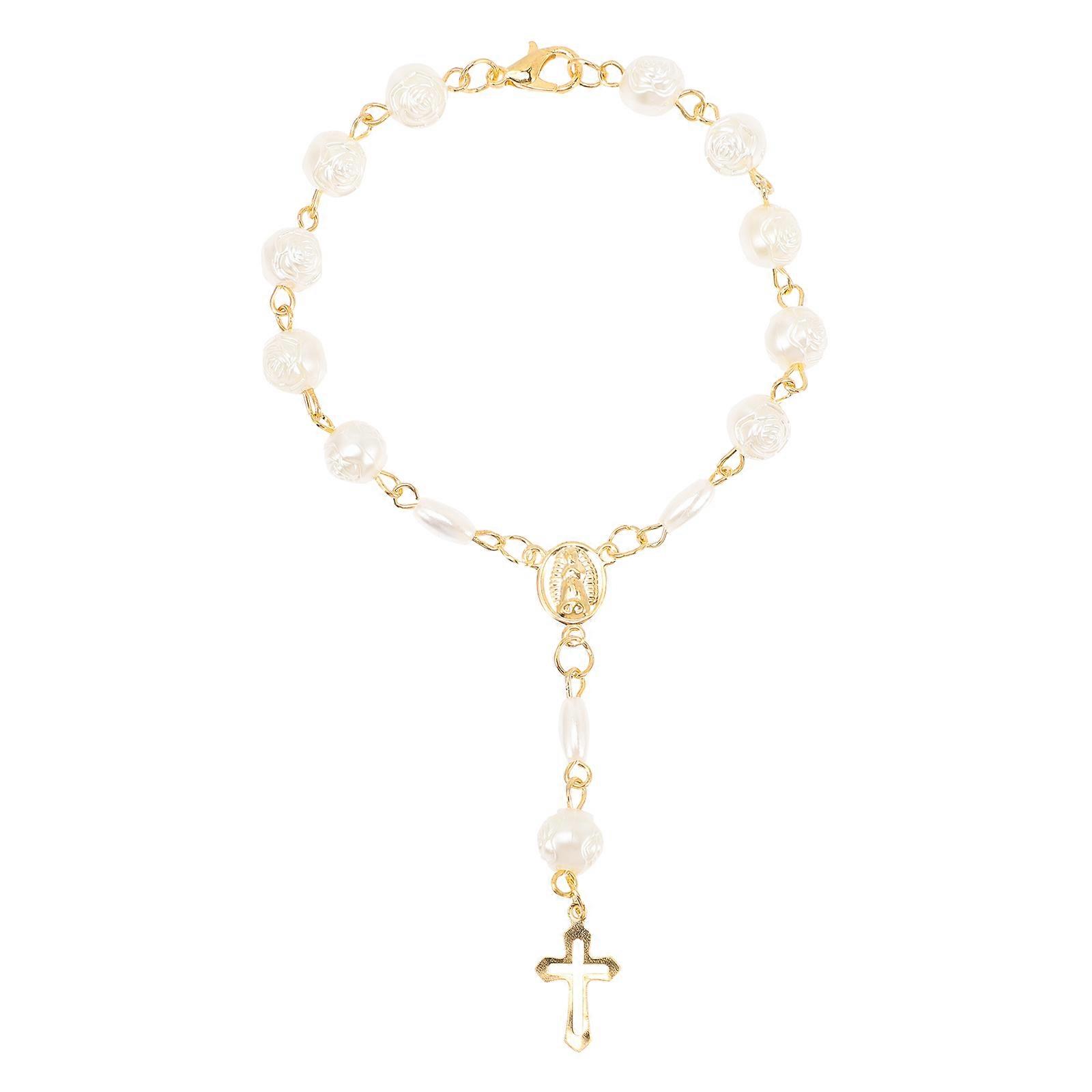 Golden Resin and Plastic Religious Cross Beaded Bracelet for Decoration Comfortable Durable Fits Most Wrist Sizes
