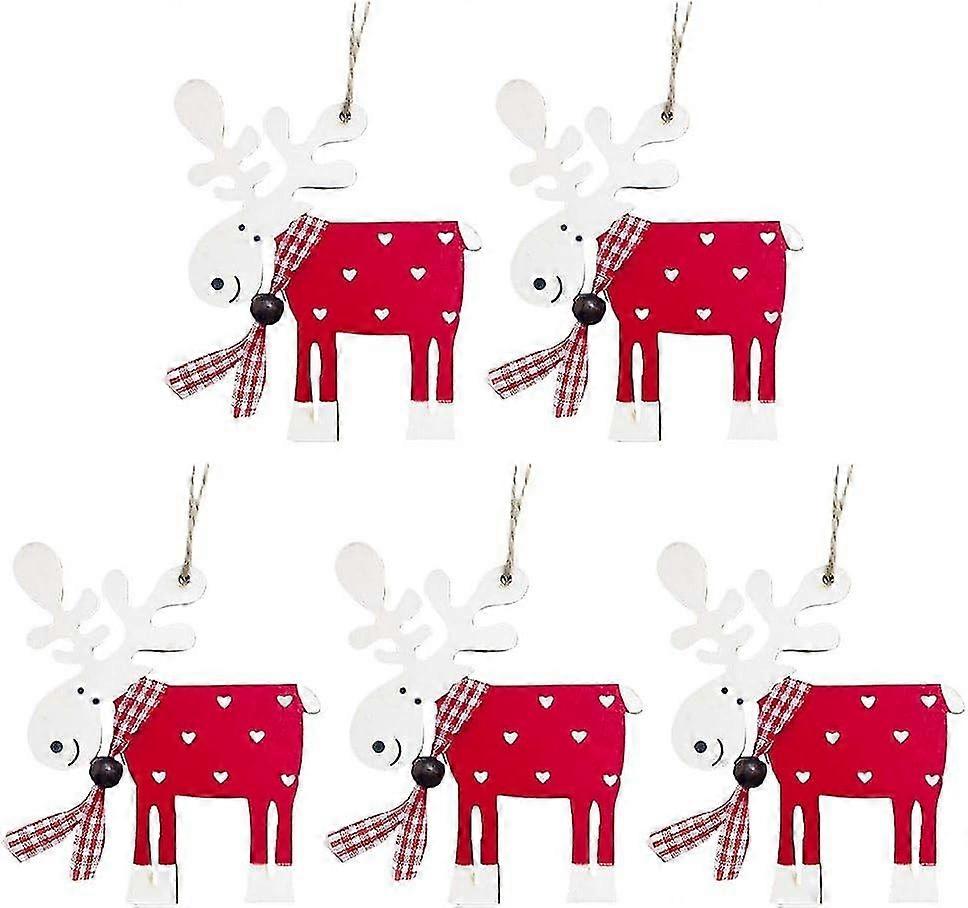 5pcs Wooden Reindeer Christmas Tree Pendants For Decorations
