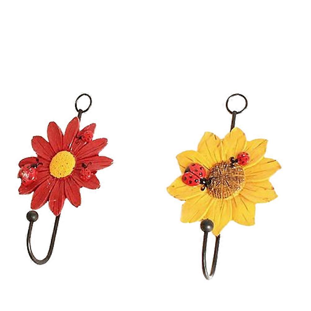 Decorative Coat Hooks Resin Flower Shape Hook Garden Accessory Assorted Color 14.5 x 8.5 x 1cm Wall Hangers 2Pcs
