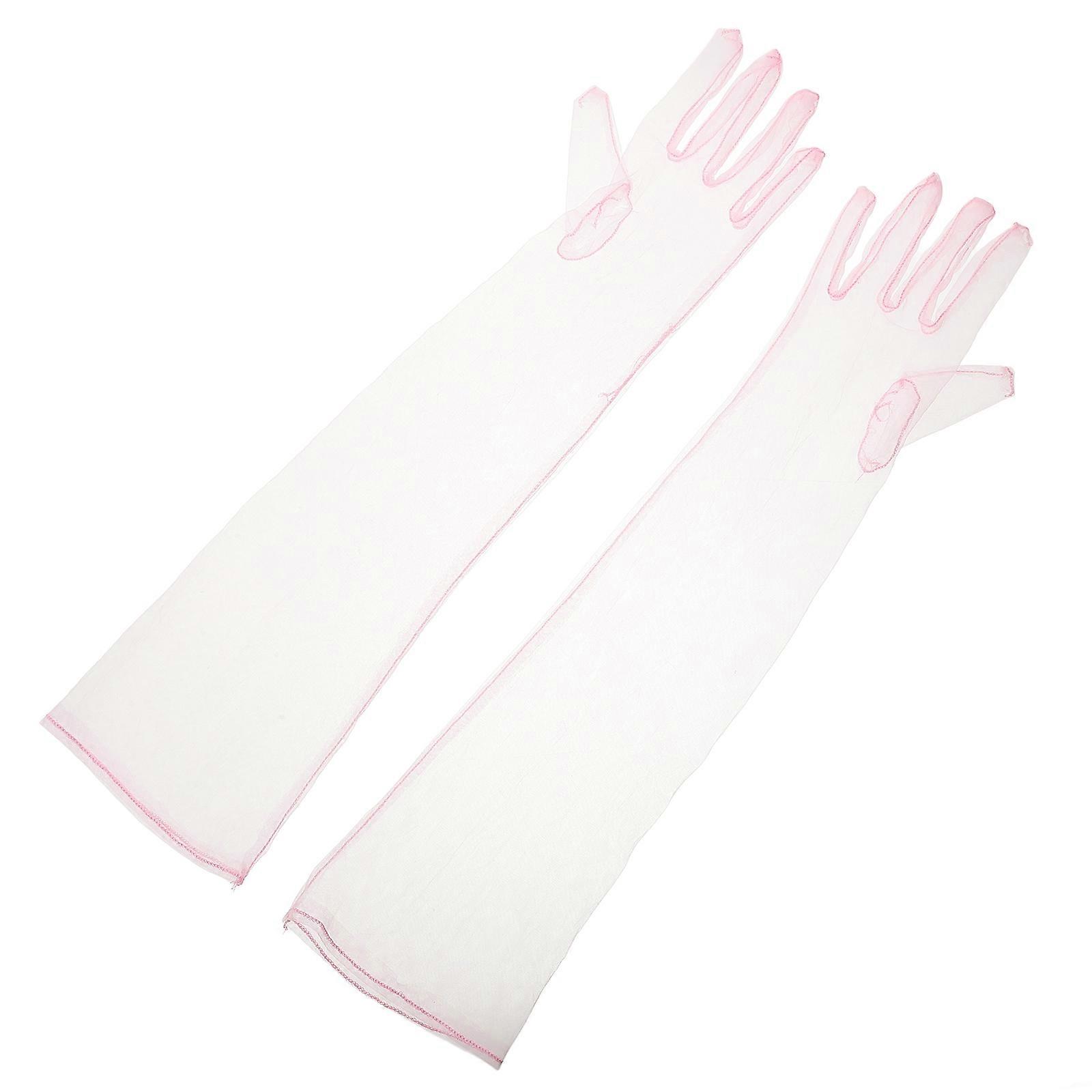 Pink Sheer Tulle Bridal Gloves for Decoration Women Elegant Long Gloves