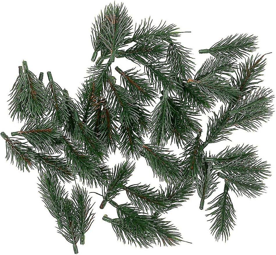 100 decorative plastic fir branches Green 6 cm Material: polyethylene With these noble fir branches you can easily and safely create beautiful decorations p> Attach them to gift wrap or use them as table decorations. It also looks great if you place the branches on large decorative balls or wind foil windows. Depending on your wishes, shorten the stems and glue the floral elements to different crafts with glue. hot glue. Your creativity has no limits
