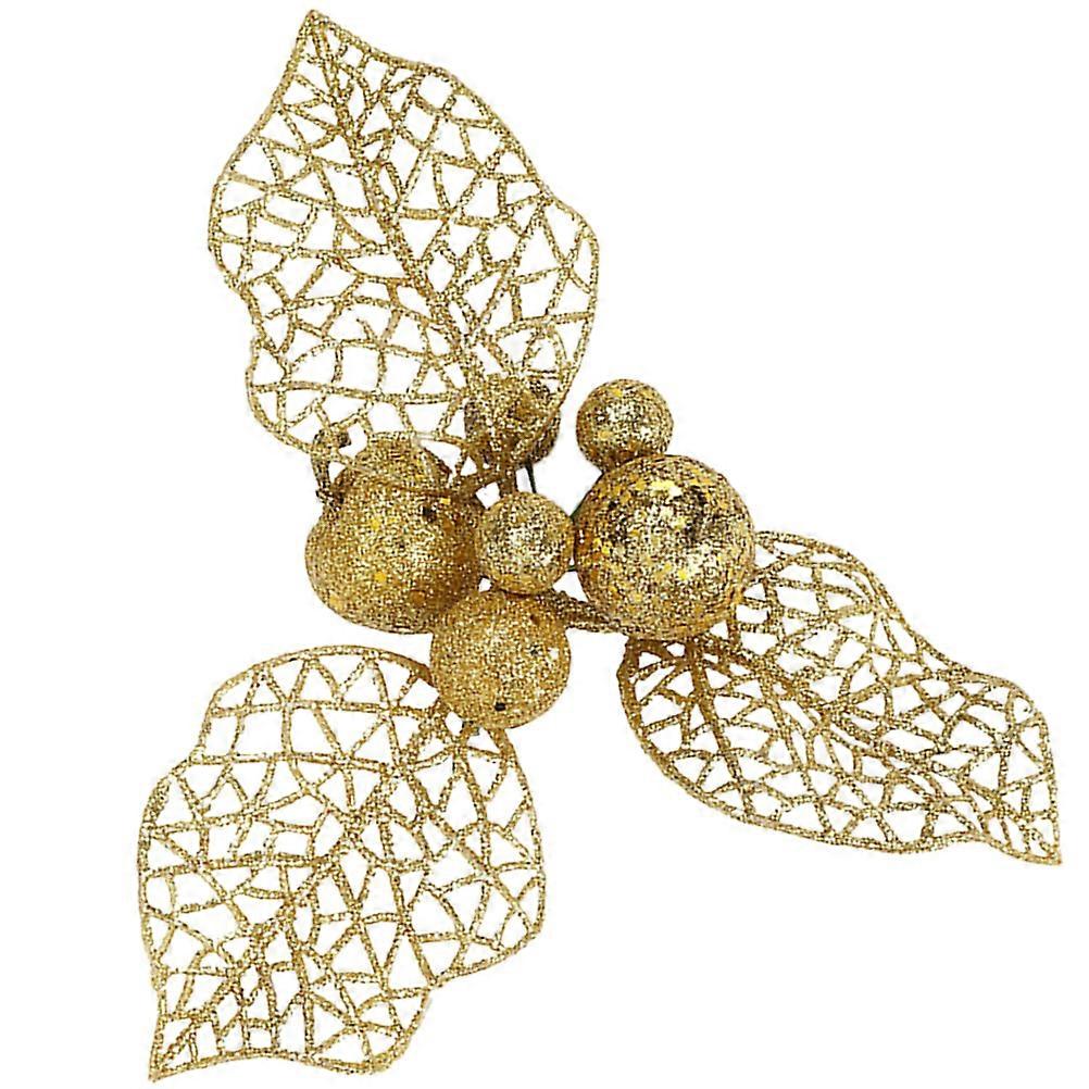 Golden Plastic Christmas Tree Flowers for Decoration Add Festive Flair to Home 10pcs