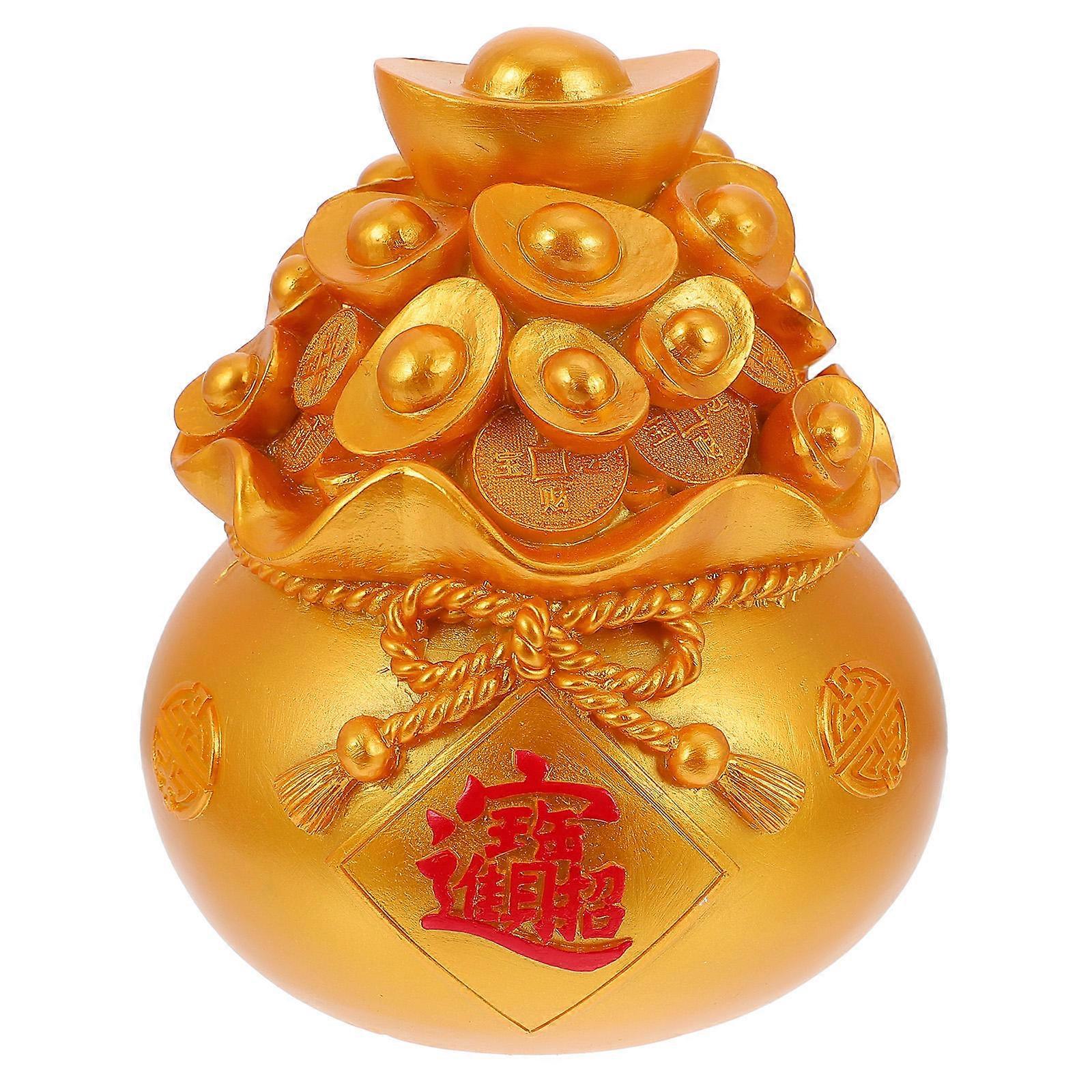Golden Resin Piggy Bank for Decoration Auspicious Saving Pot Cultivates Kids Financial Skills 4.5 Inches