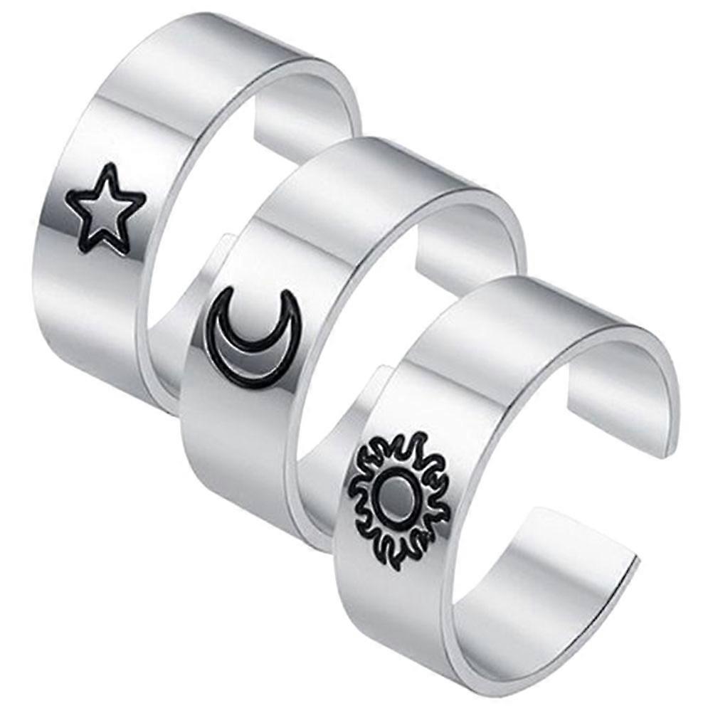 Vintage Titanium Steel Ring for Decoration 3Pcs Open Statement Rings