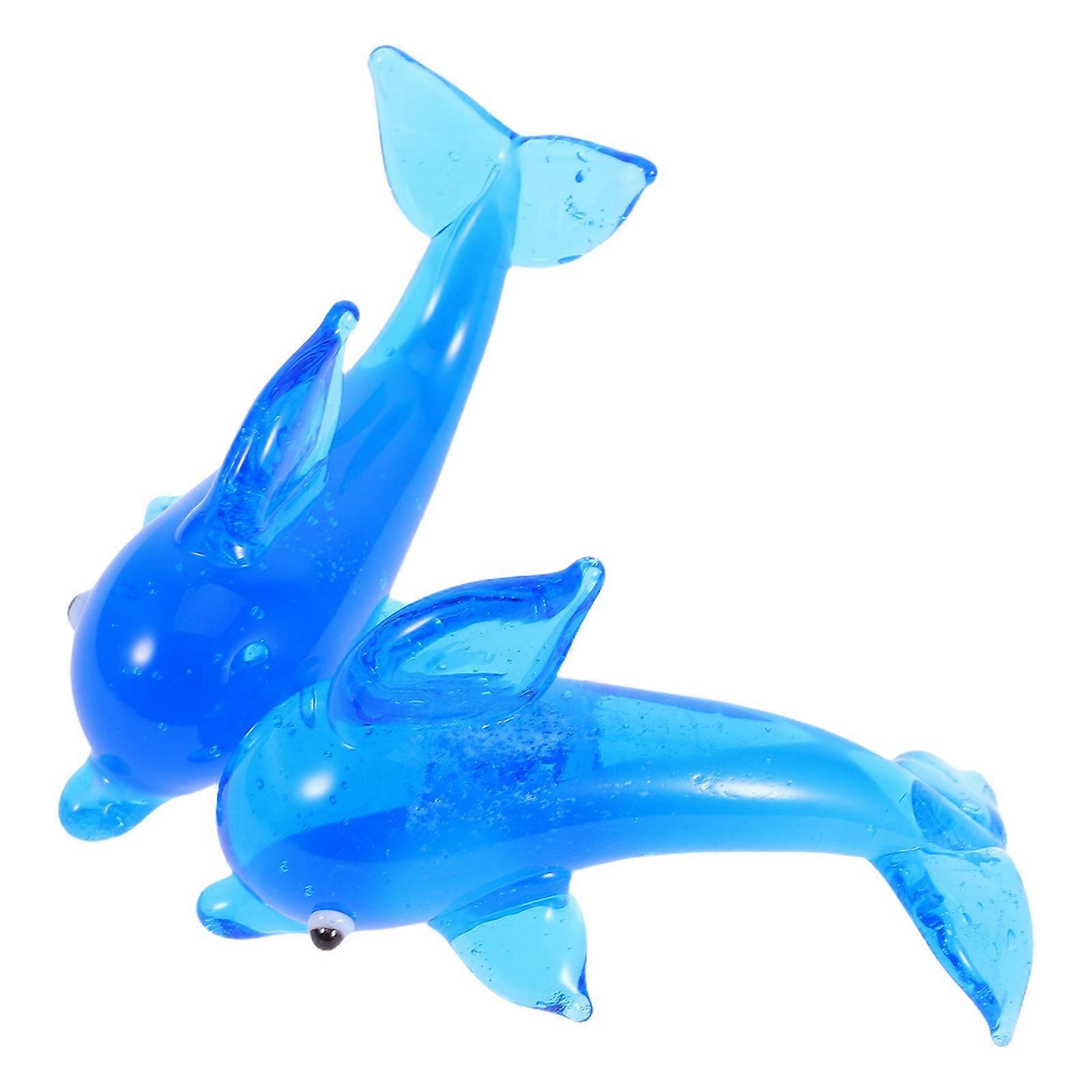 Glass Dolphin Ornament Blue for Decoration 4Pcs Indoor Sea Animal Sculpture