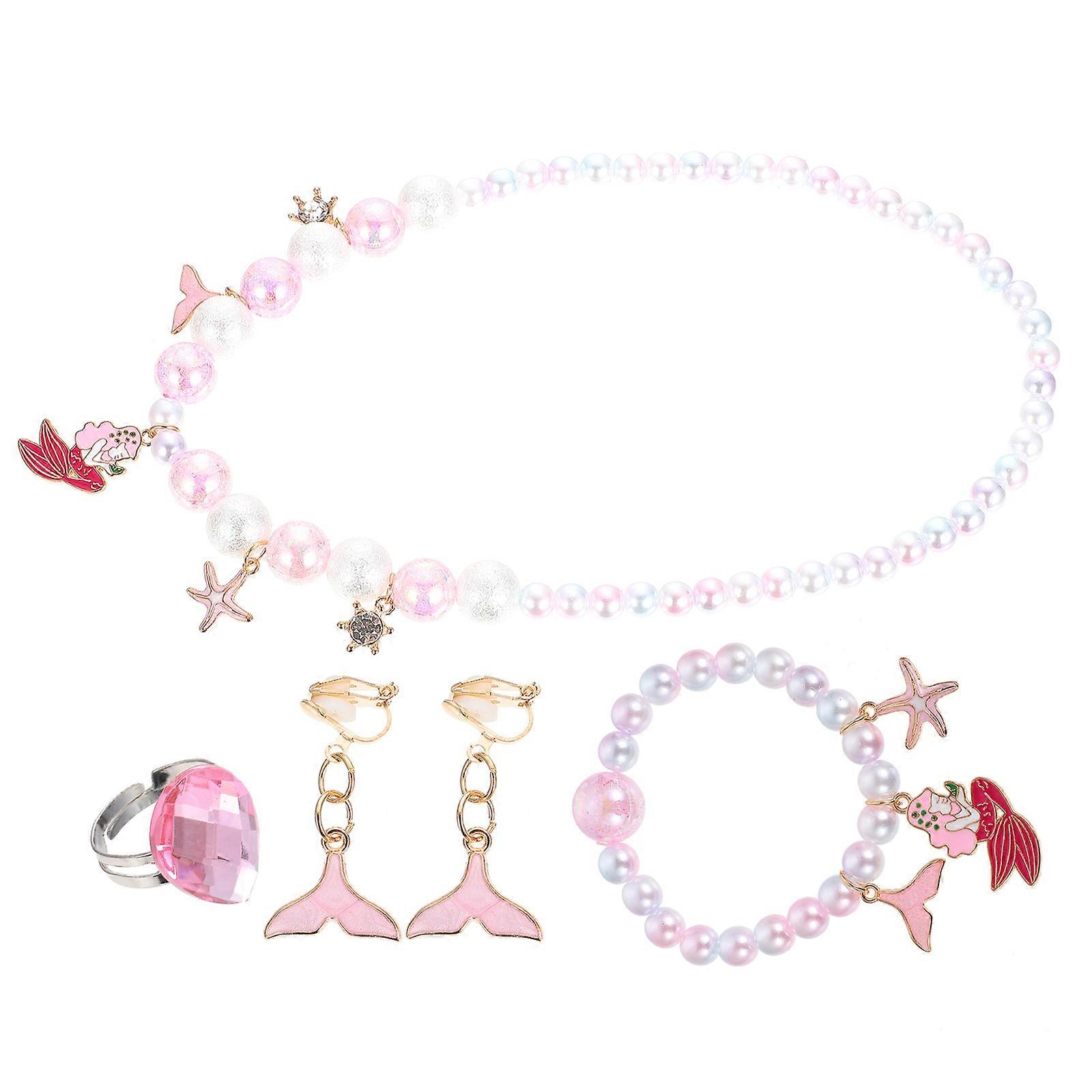 Kids Cartoon Alloy Necklace for Decor 4Pcs Set Mermaid Bracelet Ring Dangler