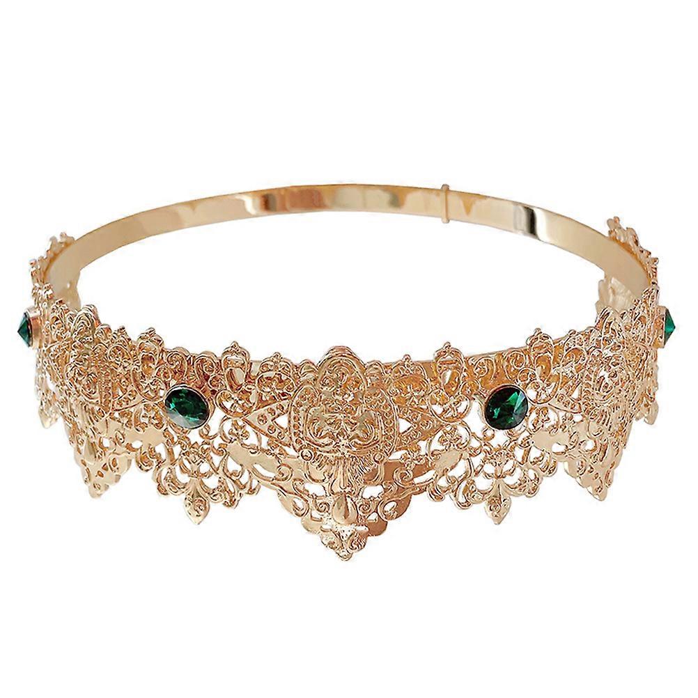 Golden Crown Headdress for Decor Crystal Glass and Rhinestone Tiara Hair Decoration