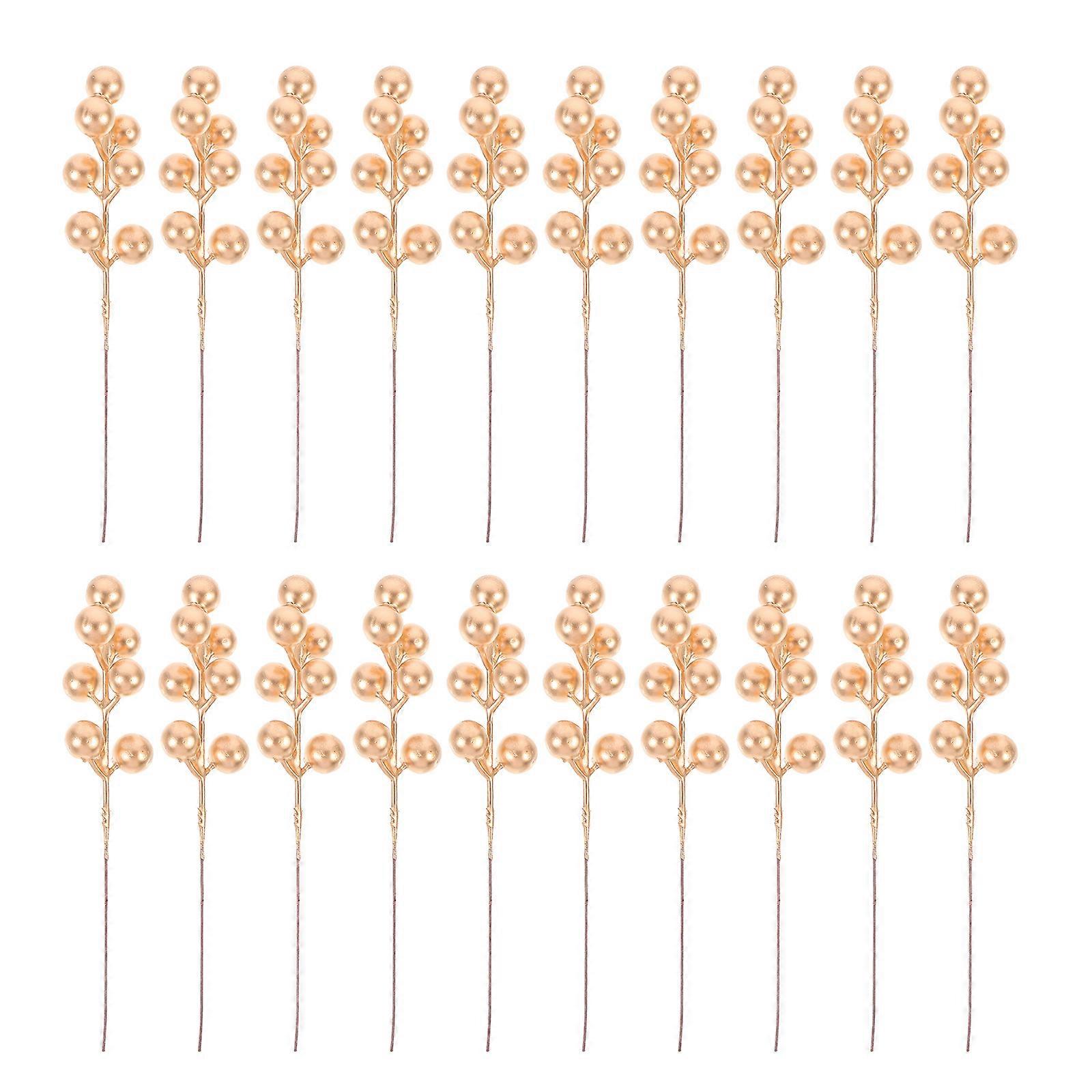 Golden Plastic Berry Stems for Decoration 20pcs仿真枝条带红果用于节日装饰