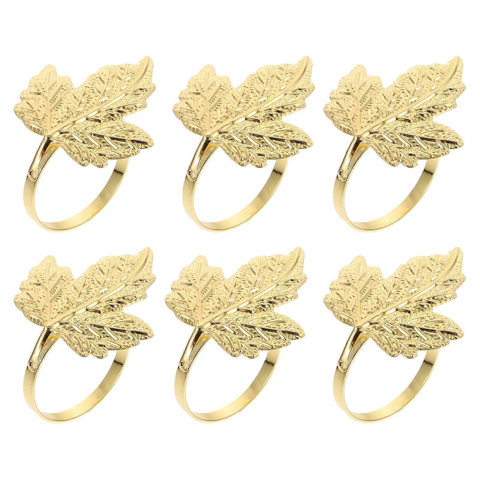 Golden Leaf Napkin Rings for Decor Elegant Stainless Steel Party Table Ornaments 6 Pieces