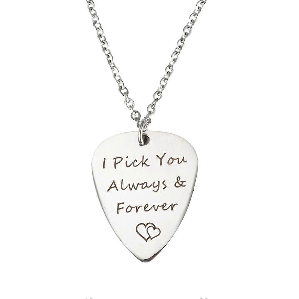 Guitar Pick Necklace with Stainless Steel Pendant for Decoration Shiny Black Cord Silver Color