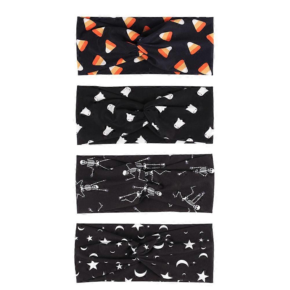 Halloween Skull Headbands for Decoration 4Pcs Elastic Non-Slip Breathable Hair Bands