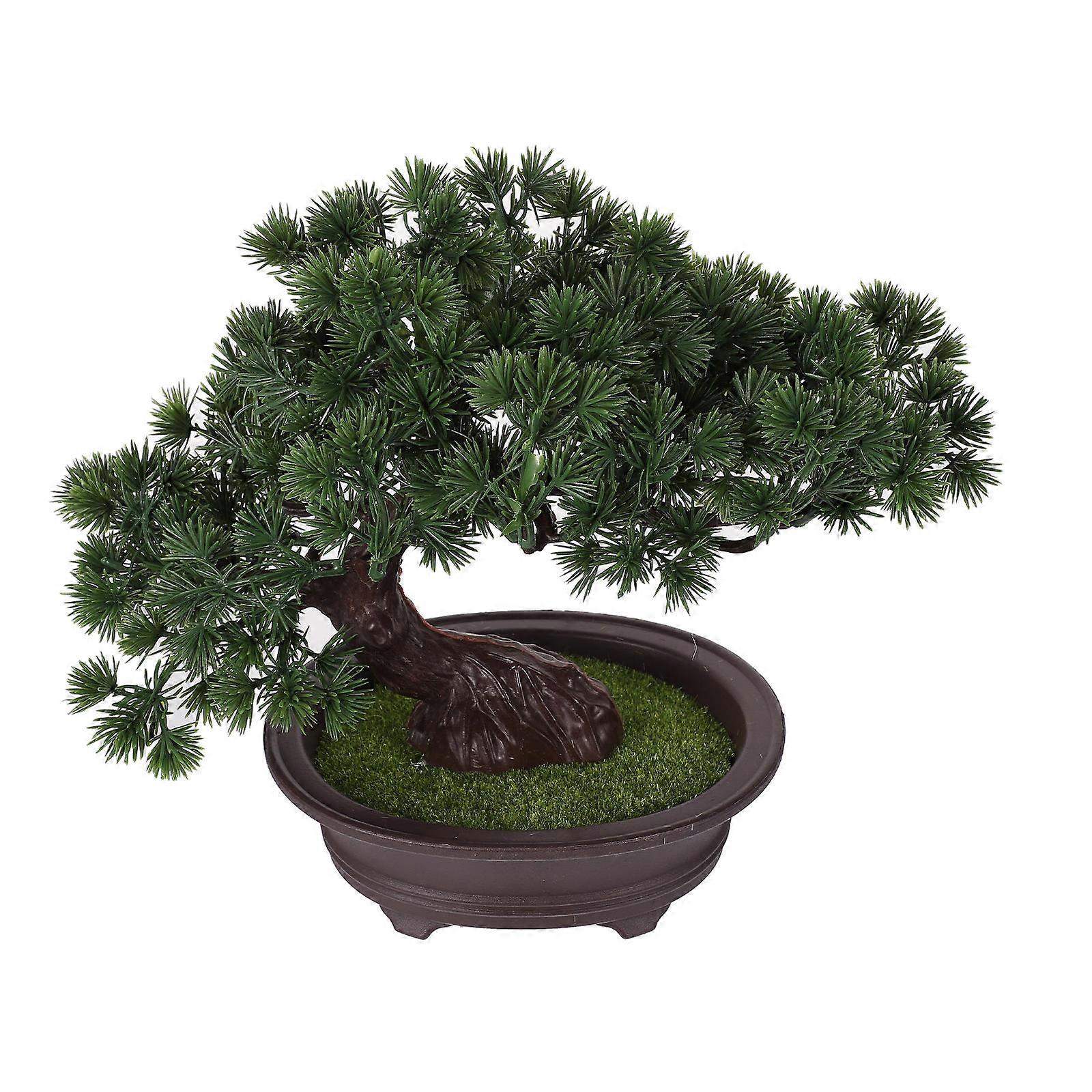 Lifelike Artificial Pine Ornament with Pot for Decoration Green Plastic Resin 12.5 Inches