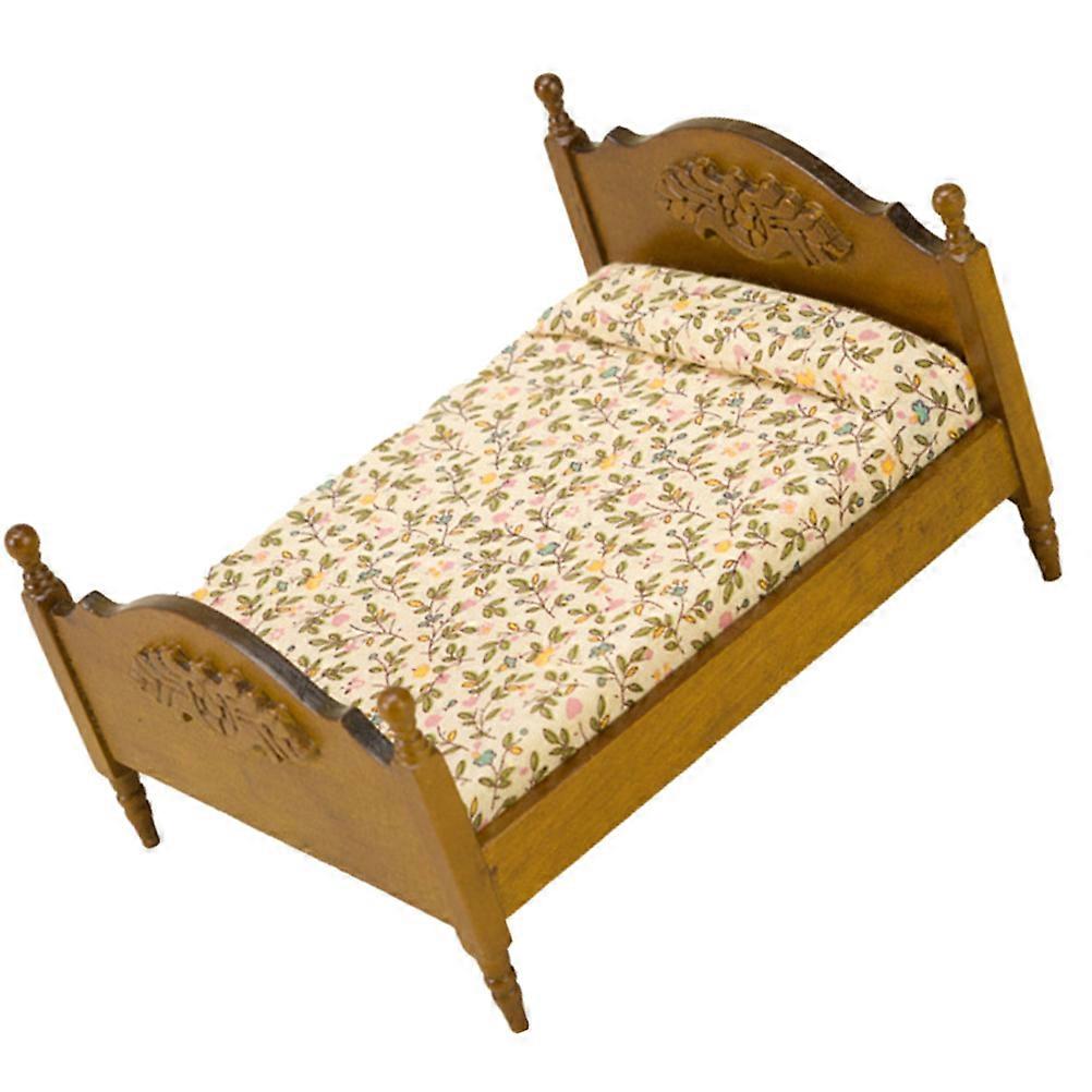 Miniature Double Bed Model for Decor Wooden Doll House Accessory