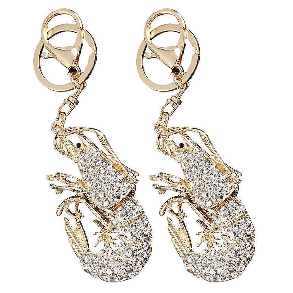 Metal Keychain For Decoration Rhinestone Inlaid Shrimp Shape Travel White 14.40X4.50X1.00CM Backpack Decor 2Pcs