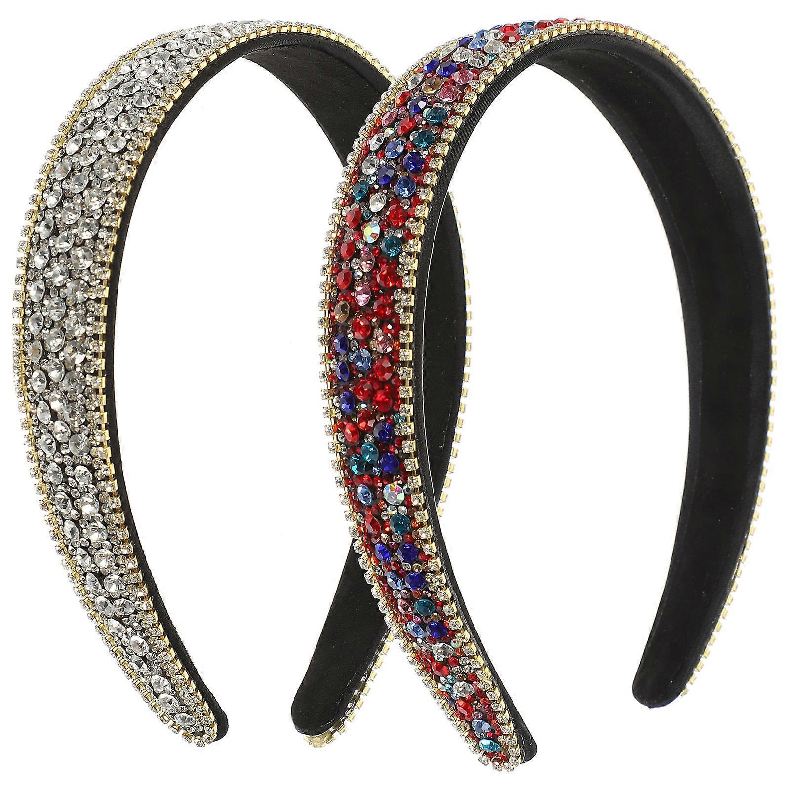 Gorgeous Jeweled Headbands with Rhinestone and Resin for Decoration 2 Pieces Assorted Color