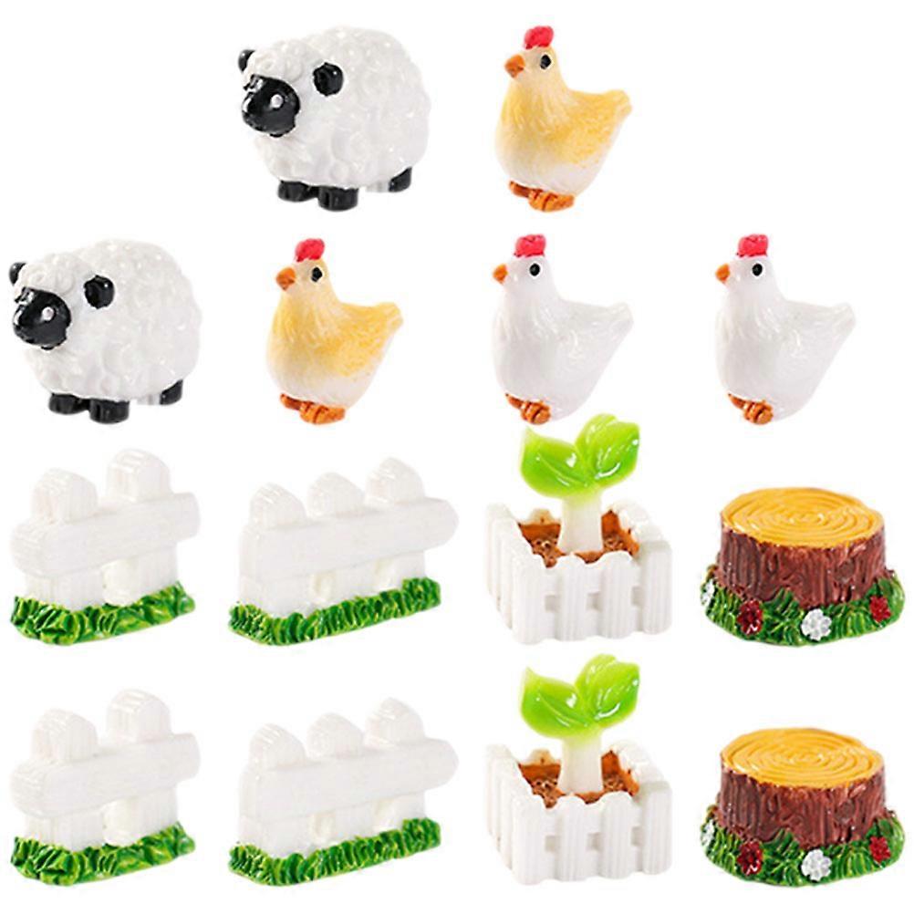Adorable Miniature Poultry Ornament for Decor Resin Craft Assorted Color 14pcs