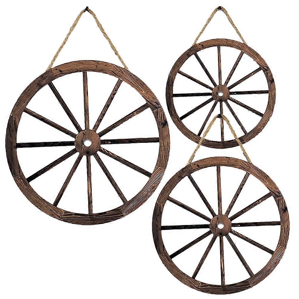 Wooden Wagon Wheel Wall Art for Decoration 15Pcs Retro Round Wheel Hanging Decor