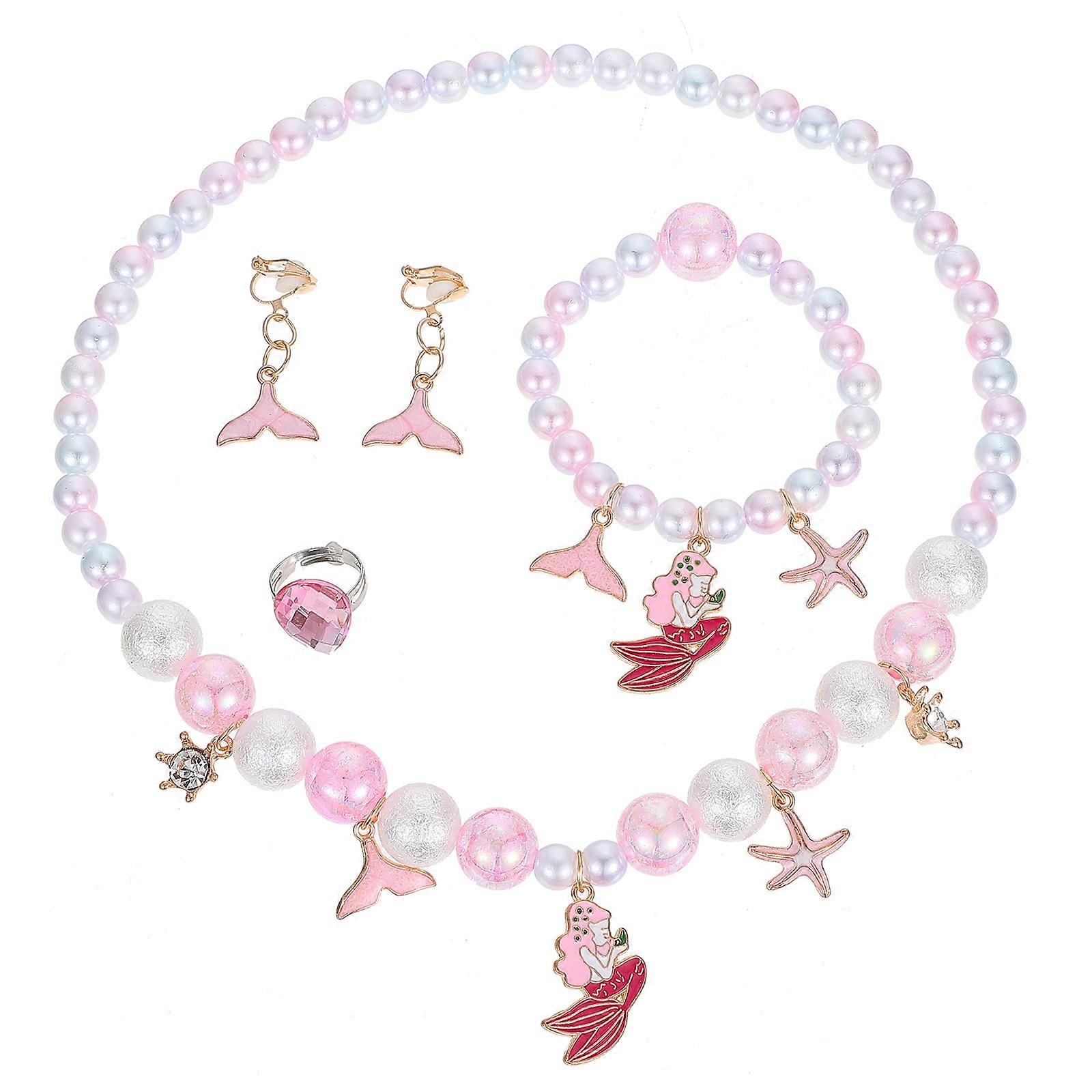 Cartoon Alloy Kids Necklace for Decor 4Pcs Set Mermaid Beads Jewelries