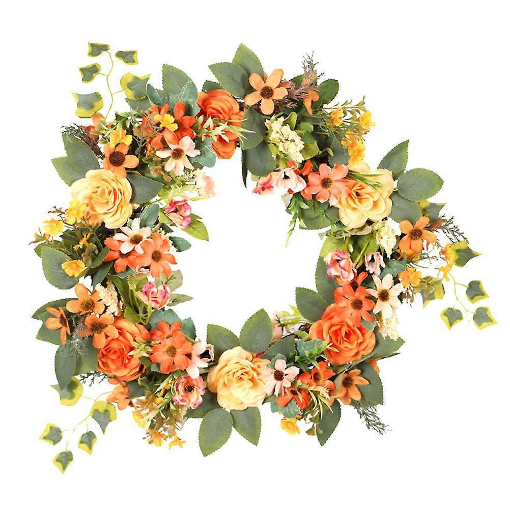Artificial Flower Wreath with Rattan Circle for Decor Assorted Color Beautiful Simulated Leaves 1pc