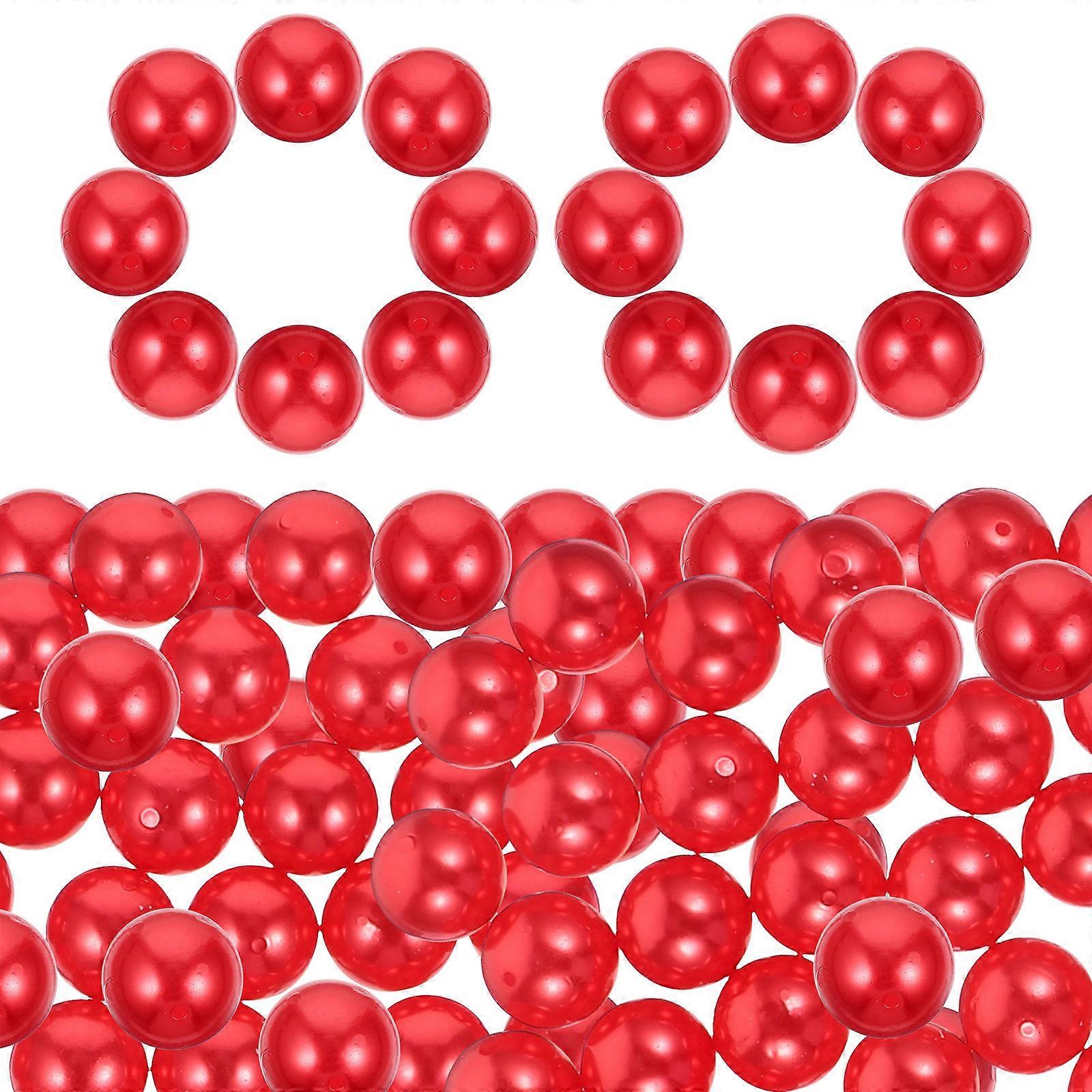 Red ABS Faux Pearl Bead Vase Fillers for Decoration 100pcs Non Hole Design