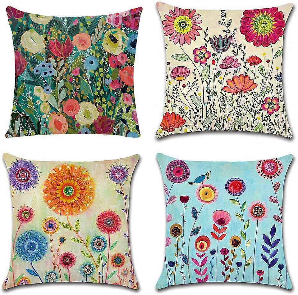Decorative Cushion Covers 45x45cm, Flowers Pattern Waterproof Throw Pillow Covers, Perfect to Outdoor Patio Garden Bench Living Room Sofa Farmhouse De