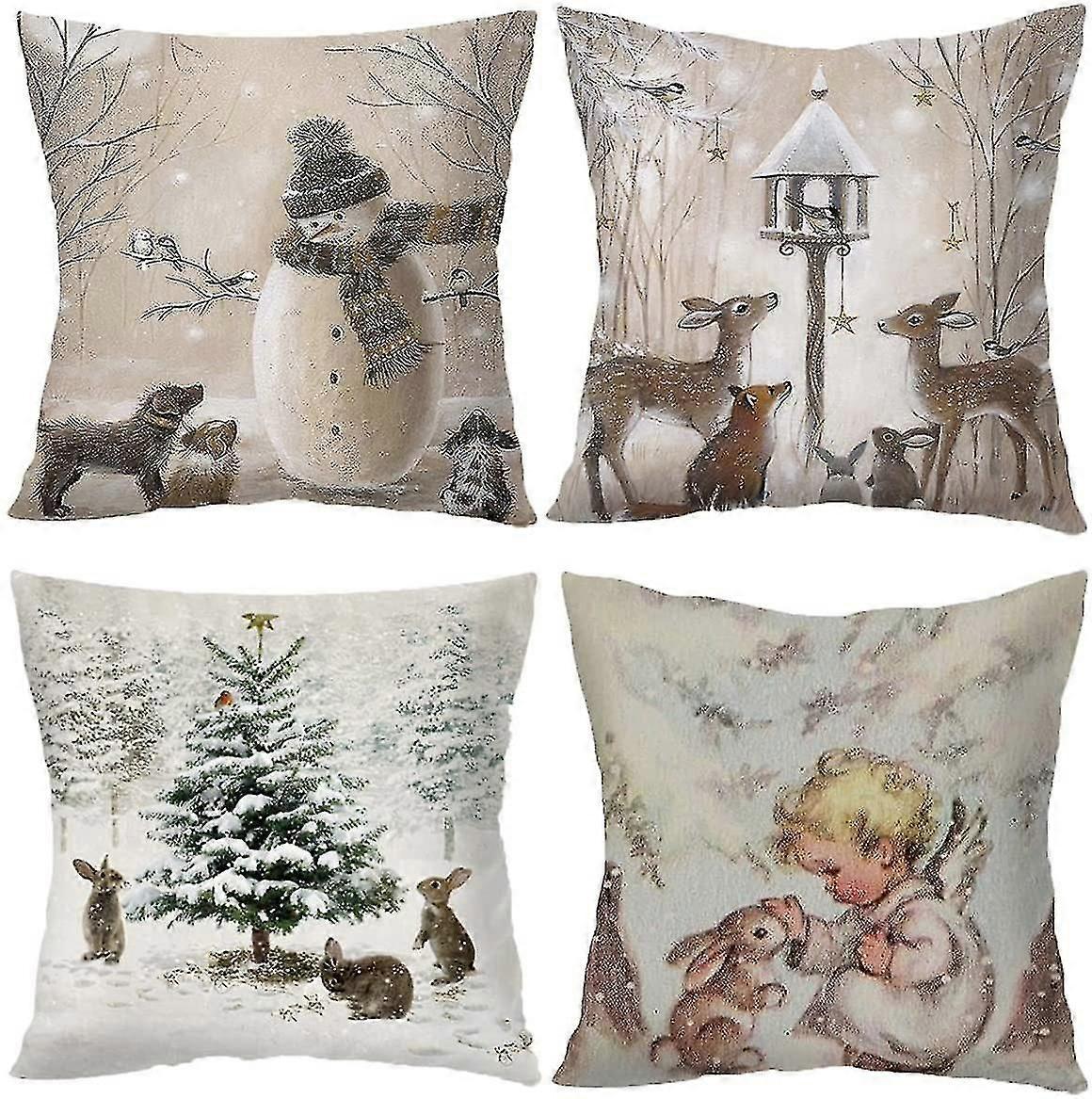 HIGH QUALITY DURABLE MATERIALSilver Xmas throw pillow covers 18 x 18 Inch (45cm x 45cm), Package includes 4pcs cushion cases. It is made of high grade breathable polyester microfiber, green, healthy and environmental. No skin irritation, no peculiar smell, It has the characteristics of anti-static and be antiallergic, not easy to shrink and deform, comfortable and breathable. Super soft feel and exquisite, just like holding your mother's hand. Fantastic quality will exceed your expectations^ UNIQUE MODERN STYLE DESIGNFarmhouse Christmas series pillows cushion case, Cute animals rabbit dog deer and angelclassic retro style. These beautiful Christams renderings will extend the holiday spirit to any space, indoors or out, which makes the festival interesting. It can increase joy in home life. Exquisite workmanship, hidden zipper design, The two ends are reinforced and not easy to be broken. The pillow core is very easy to install, easy to remove and wash^ WIDE RANGE OF APPLICATIONAs the winter holiday season is approaching, our Christmas pillowcases can decorate your home perfectly, make it more festive. It can be used for Christmas party, carnivals decor. Great for Couch, Sofa, car, bedroom, yard, outdoors, chair, living room, office, patio, lounge etc. When you are tired, Like Cute Animals and angel are hugging your waist, it is warm. It is really a ideal gift for Mom and Dad, wife and husband, kids, friends and relatives^ MAINTENANCE AND WASHING TIPSThis pillow case is made of soft polyester material, easy to care and wash. It can be washed either by machine or by hand and does not fade after washing. Gently cycle only, don't bleach, tumble dry Low, don't iron, it will be as good as new. All cushions are handmade, there may be 1-2cm tolerance^ Invisible Zipper: Our buffalo plaid Christmas pillows adopt the design of invisible zipper, which makes the overall appearance of holiday pillow covers look more fashionable and beautiful.^