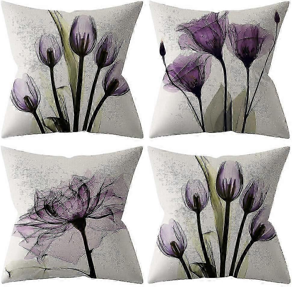 Double-sided Pattern:New 4 PCs Square Cushion Covers/Shells 45cm X 45cm(18" X 18"),No Filler or Insert.The chic purple flower and plant pattern printed on both sides of the linen cushion covers make it easier for you to decorate the place you like,allow you to place it at will, without having to look for the patterned side for decoration,it's more convenient for you. .