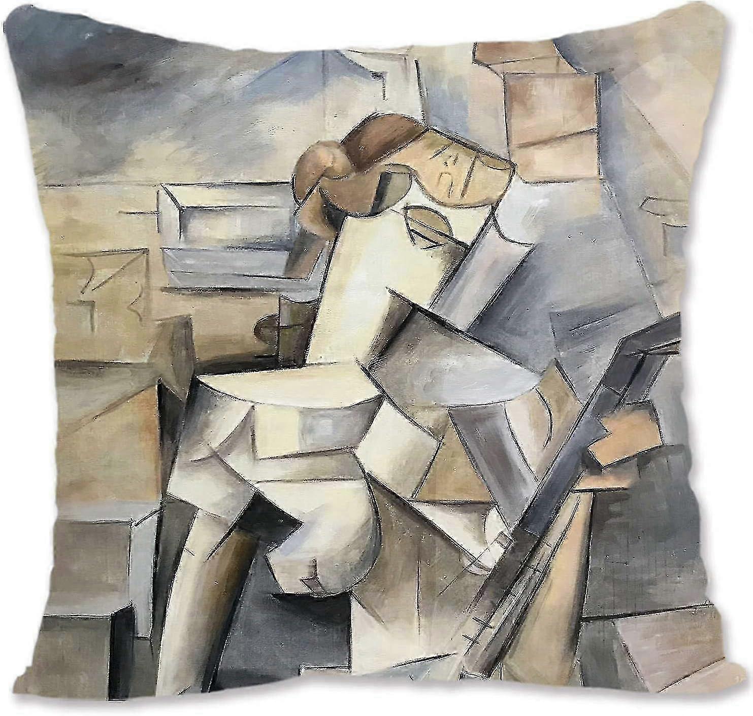Decorative Throw Pillow Case Cover Abstract Art - Picasso - Seated Nude B-Girl With a Mandolin B (a1-754)
