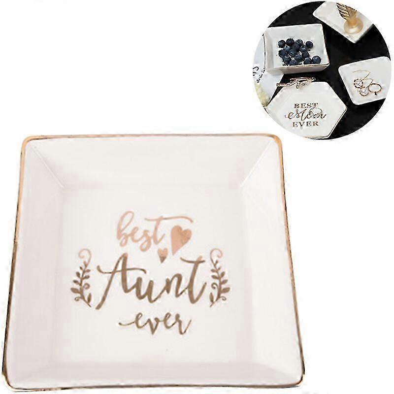 Decorative Ceramic Trinket Tray, Gifts for Mom, Square Tray with Gold Edge for