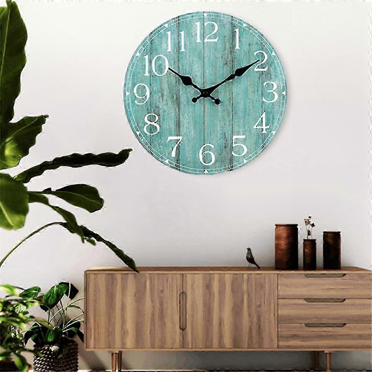 Decorative Turquoise Wall Clock - Silent Battery Operated Timepiece in Teal Green Finish