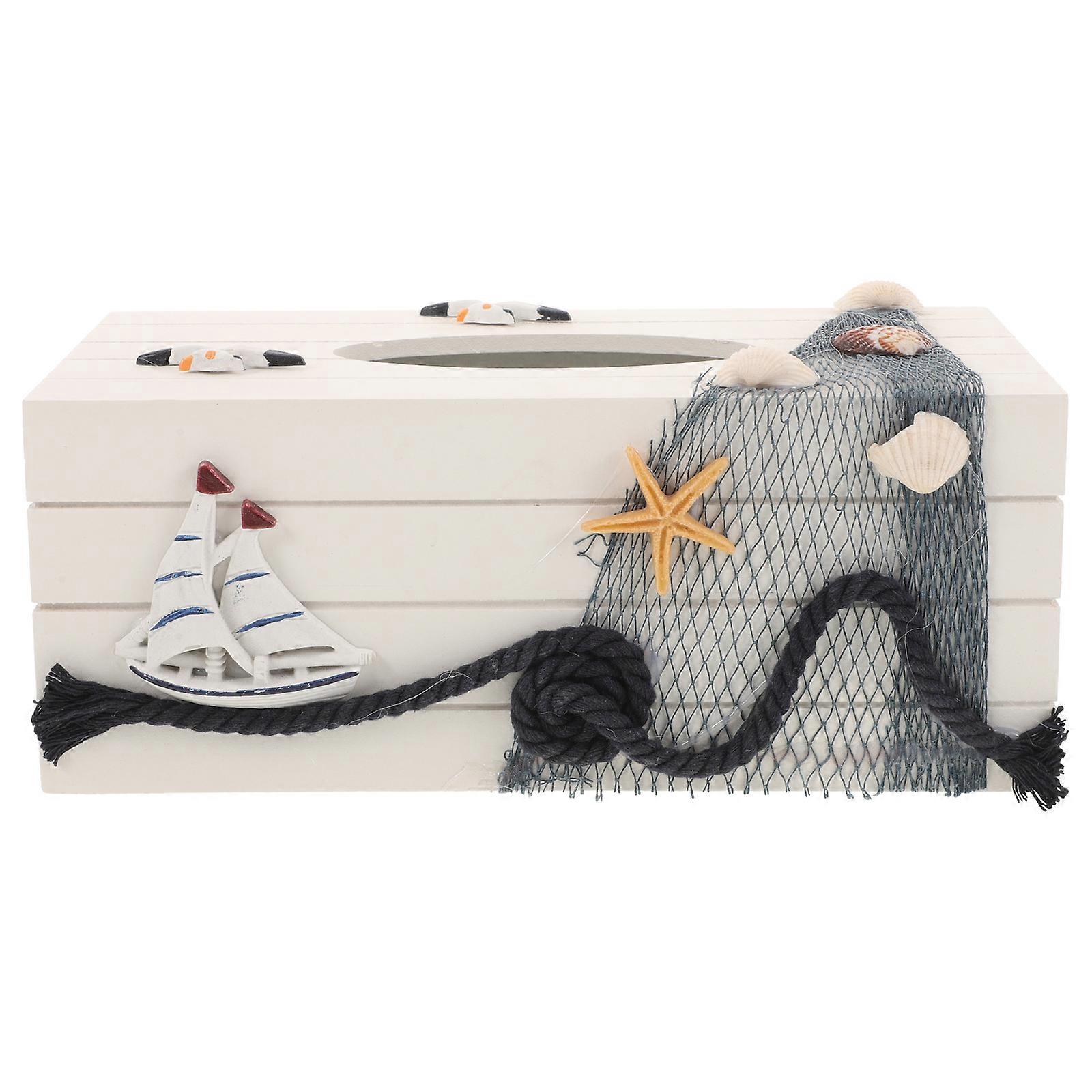 Decorative Tissue Box Cover Wood Nautical Design Multifunctional Storage for Home and Bathroom 5.5 x 5.5 x 5.5 Inches