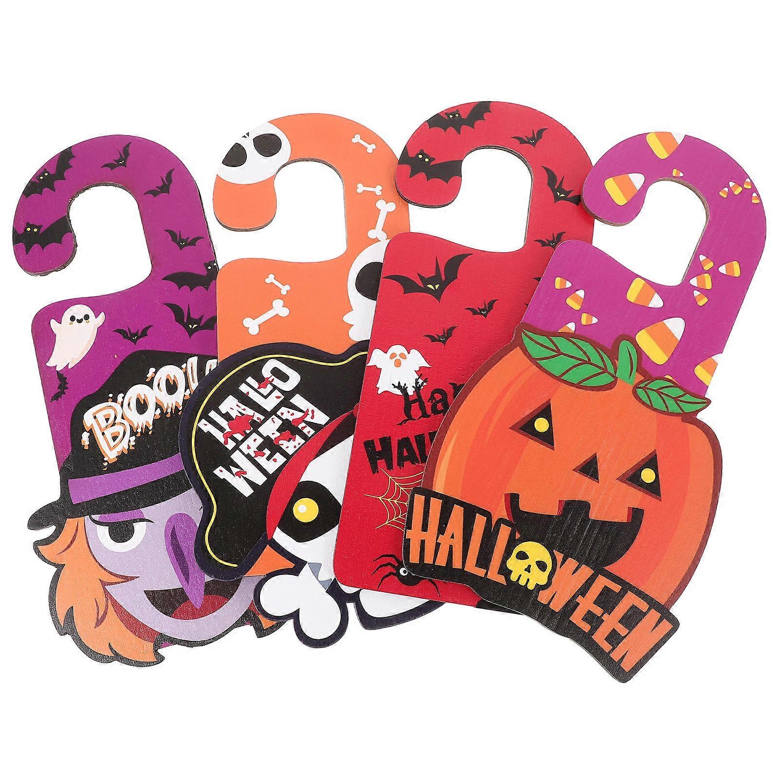 Decorative Door Sign Halloween Theme Witch Design Wooden Door Hangers 10X20CM Assorted Color 4Pcs