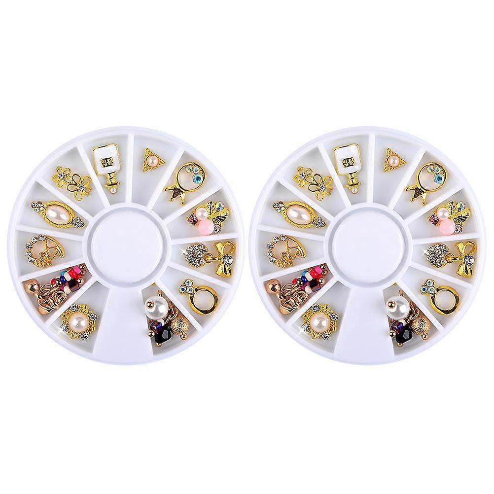 Decorative Nail Jewelry Metal Rivet Studs 12 Grids Set For DIY Enthusiasts Assorted Color Suitable For Home Use 6x6x5cm 2 Sets