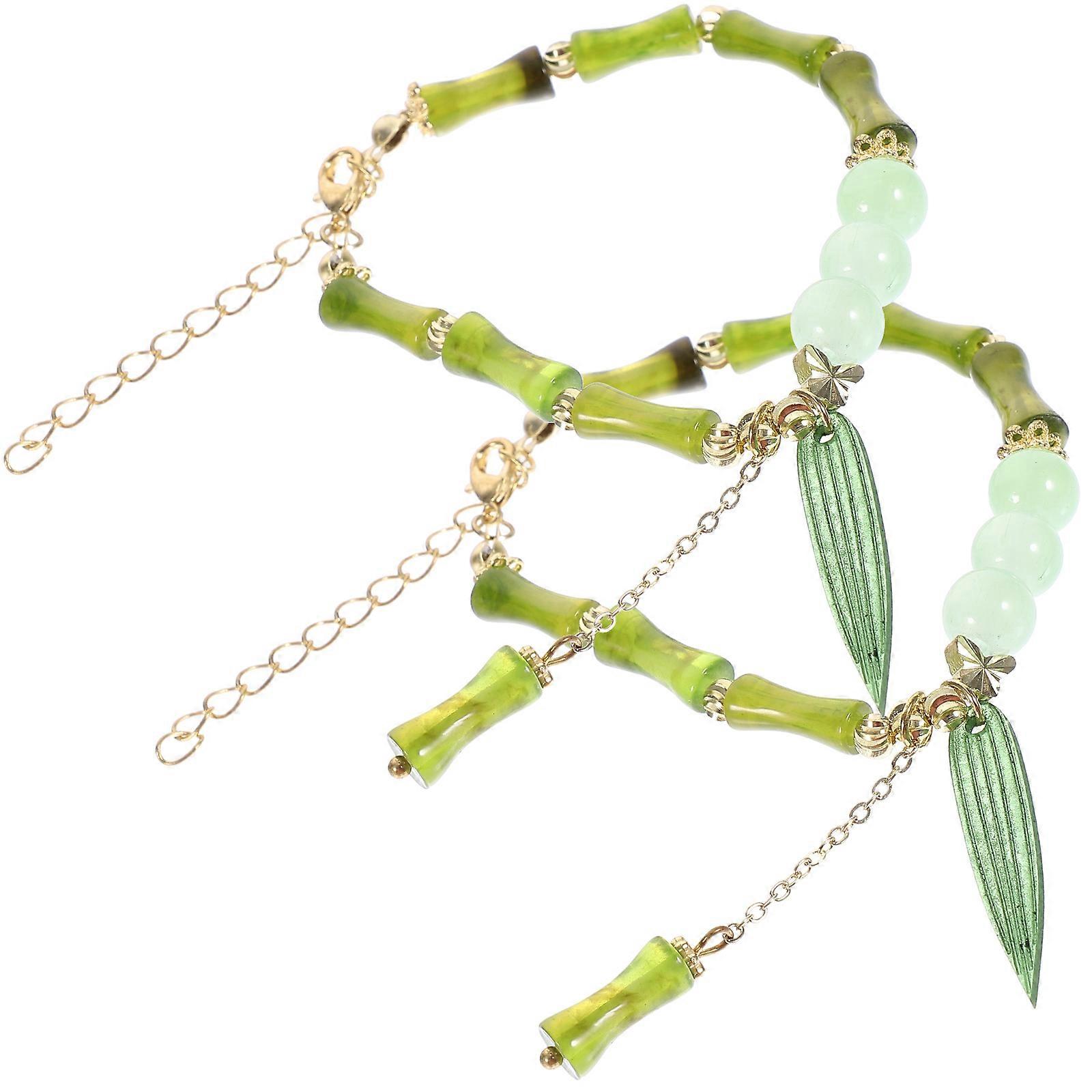 Decorative Bracelet Bamboo Joint Beads Bracelets Chinese Traditional Handicrafts Bracelets Multi 9x1x0.5cm Comfortable to Wear 2Set