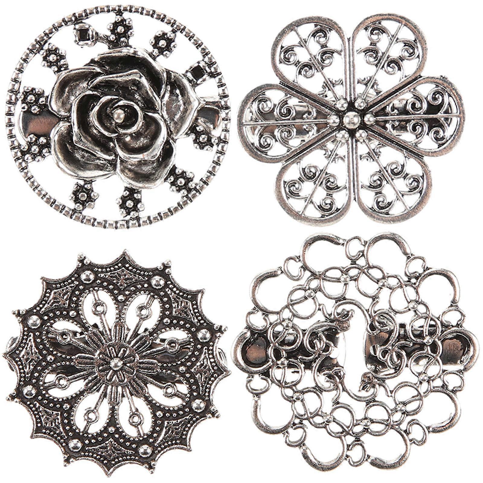 Decorative Brooch Pin Vintage Style Flower Shape Alloy Lapel Accessory For Women Clothes Fixation 4Pcs